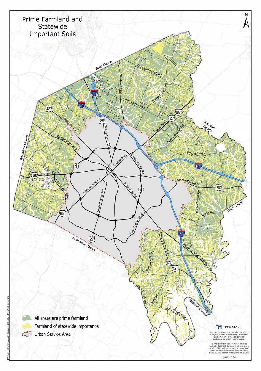 � 0 <!) .,. ;;; 0 <!) Ill :, e <!) Prime Farmland and Statewide Important Soils ......__,, �,_ ....__ v;;-...., ,s-<9-?,..�'-'e All areas are prime farmland "I')�'........ Farmland of statewide importance .., , �-__1-· Urban Service Area '�--............. .... .,, A #..---'\.� .,;{.,.,..,....,.. \ \ ,,,,c_.,,/----- . N A So�C "co----��,,�,, \ \ 'l""I\�."(! tr \' \ /'-"'()·(· , \ / I I,,''/j l� >) \ \ .'--J'°) �?' . ;: _., ,, ,.r-pp'-� 'h LEXINGTON Thisproducttsproducedanddtstr1buted�: LeMlngton•f'ayetteUrbanc.ountyGovern.ment GlSse,ctionlOICVin<!St,Sthf1ooi LexingtOn,tcY40S07. Notlo,-(�. 1\111nr01rnotlononthisPJoduct1$�!cved aa:urnte,but1-snotg,uaranc:eedwithoute1Tor, Nopartofthispubllc.atlonmaybereproduced, stored,Of'transmtttedInanyform,Of'byany meanswit.hootwrittenpermlsstonfromLIUC:G. 02022lfUCG i:-:._ _.