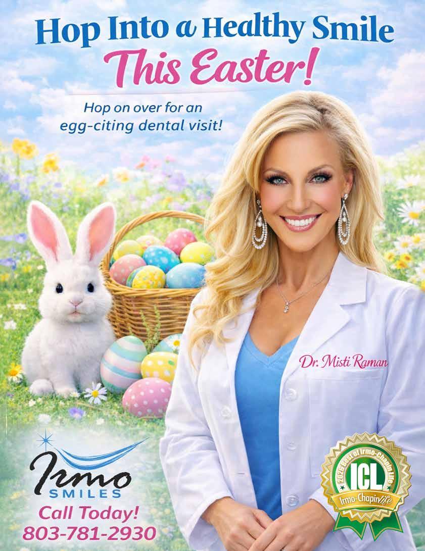 What are your plans for this spring? Easter is in April, so it is a tad later than usual. Thanks for reading Irmo-Chapin Life Magazine. We are proud to feature the local community and the wonderful folks who both teach our youth and feed our stomachs. We hope you enjoy the stories we share in our magazine. We are thankful to our supporters who advertise. Because of them, we deliver Irmo-Chapin Life Magazine to your mailboxes for free each month. Our goal is to keep you connected to the Irmo-Chapin community, and we appreciate the time you spend with Irmo-Chapin Life.