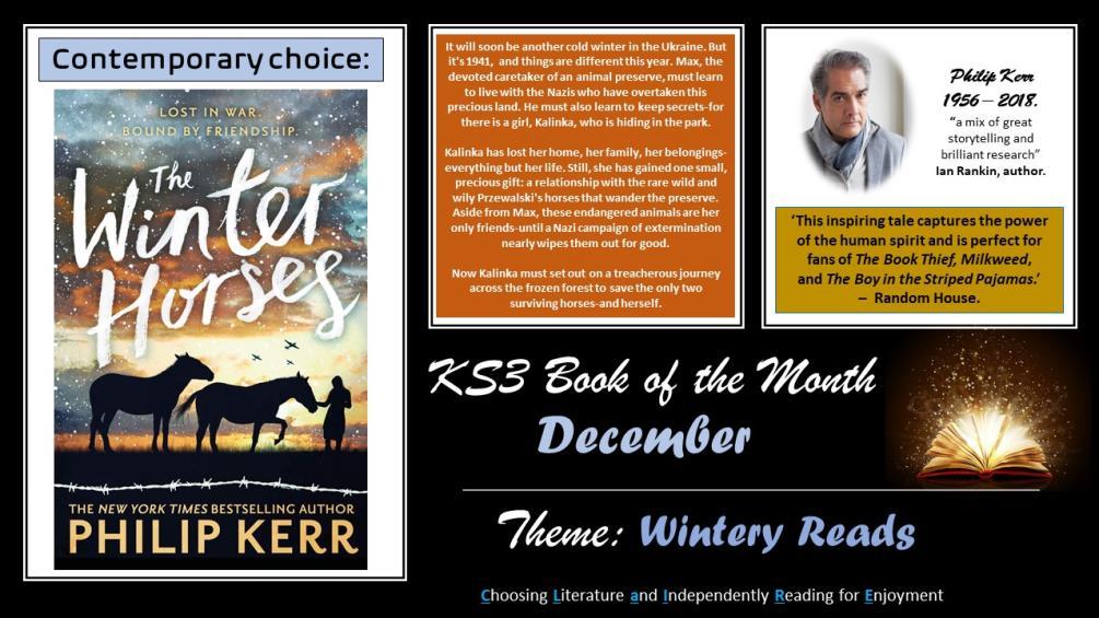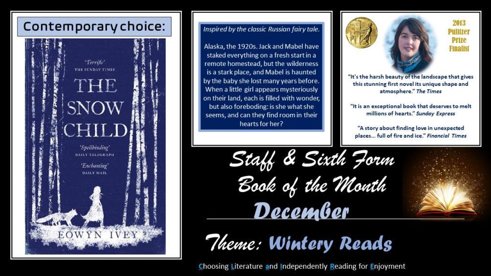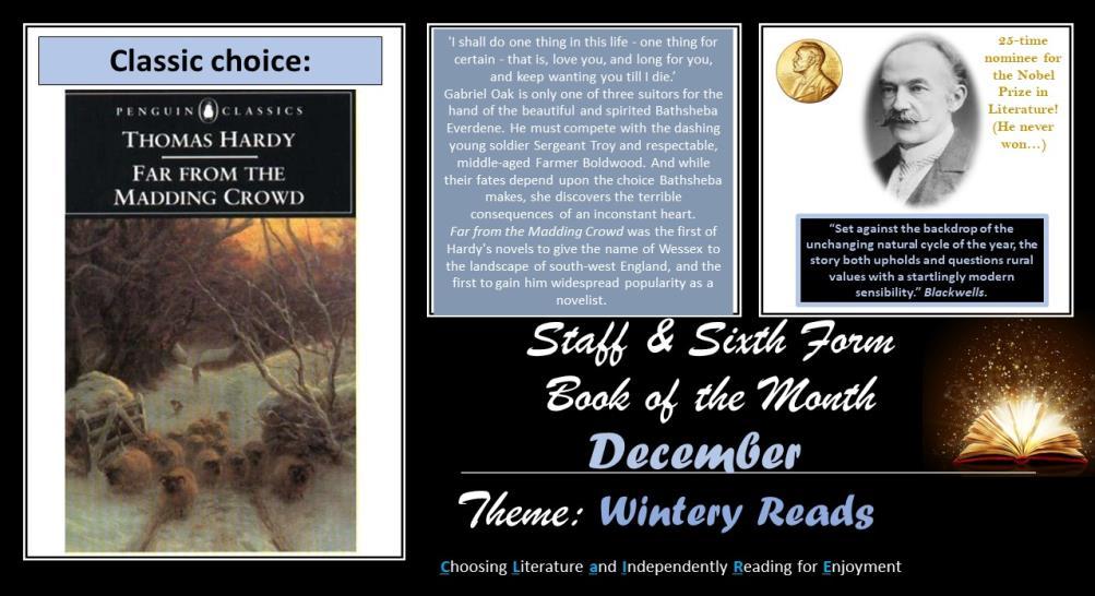 As part of the English Department’s Choosing Literature and Independently Reading for Enjoyment (C.L.A.I.R.E) scheme, each month we will be making a section of recommended reads for Years 7 - 11.