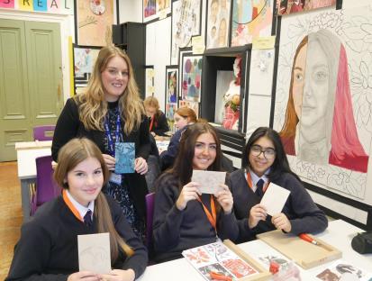 As you can see from the images below, the card was used for a Year 9 Wellbeing day. They have made stunning Christmas cards using the technique of lino cutting and then using the printing technique to transfer their bold, decorative design’s on to card. Students also used the card to make a collage version of a gingerbread house. The above processes will be used in the future to enhance their experience in the arts. Mr R Williams, Teacher of Art.