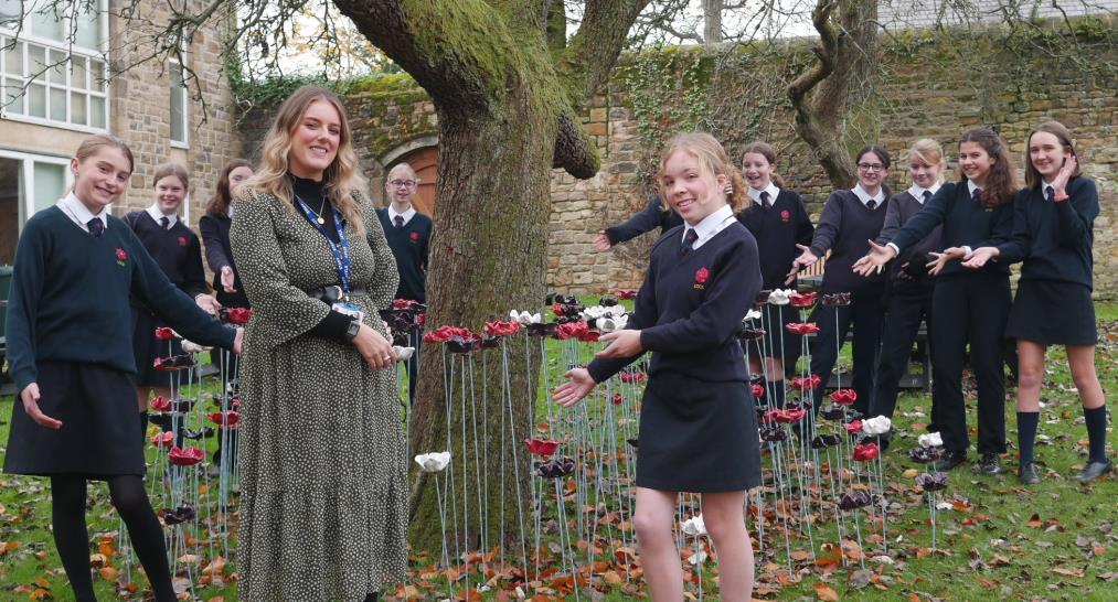 Students and staff from the LGGS community, worked together to create a collaborative artwork for Remembrance Day. The artwork consists of over 200 handmade clay poppies, each glazed in either red, white, purple or black. Thank you to everyone who helped and a special thanks to Mrs P. Doran for your time, energy and commitment helping with each and every session, to Mr J. Backhouse for cutting the steel rods, to site staff for safely moving the poppies to the gardens and to Ms C. Nickell and Ms P. Doran for helping with the instalment. The installation will be in the ground until next year and then the poppies will be for sale for £5 with proceeds going to poppy appeal charity. E Field, Teacher of Art.