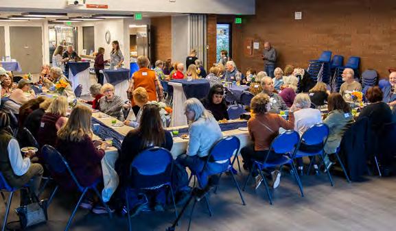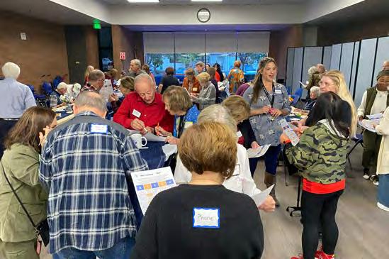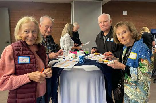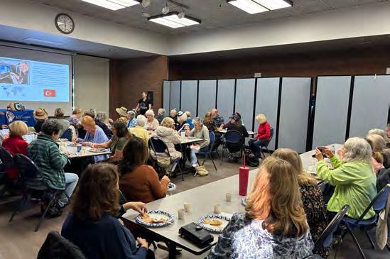 This November we were grateful to engage with so many 55 Plus members! We had 80 people come to our Member Mixer to celebrate reaching a record high of 1000 members this year. We enjoyed socializing, hors d’oeuvres, meeting new people, seeing everyone get involved in our games, and handing out raffle prizes from awesome community partners. Thank you to local dentist James Lin for sponsoring this event. Thank you to local businesses who kindly donated raffle prizes: Domus, Beyond Text, Maple Leaf Donuts, Double Ds, Athletic Performance, and dentist James Lin. At Thanksgiving Lunch, we served 90 pounds of turkey from 16 whole turkeys to over 170 members! Los Gatos Meats cooked up a delectable Thanksgiving Feast. Leftovers were donated to Live Oak Nutrition. Members, you blew us away with your kind donations of high-quality socks and underwear. These items were donated to the Comfort Cabinet at the library, St. Luke’s and Live Oak Nutrition so that they can have an impact in our community. Thank you to Vasona Creek Healthcare for providing sponsorship and volunteering. We are grateful to the Los Gatos Lions who provided a super hardworking team of volunteers! There were plenty of opportunities to get creative this month making clever morse code bracelets, painting snowmen, and painting custom door mats! Guest speaker Katie Cooney discussed Life Transitions and Food for Thought participants learned all about Turkish foods from Jackie.