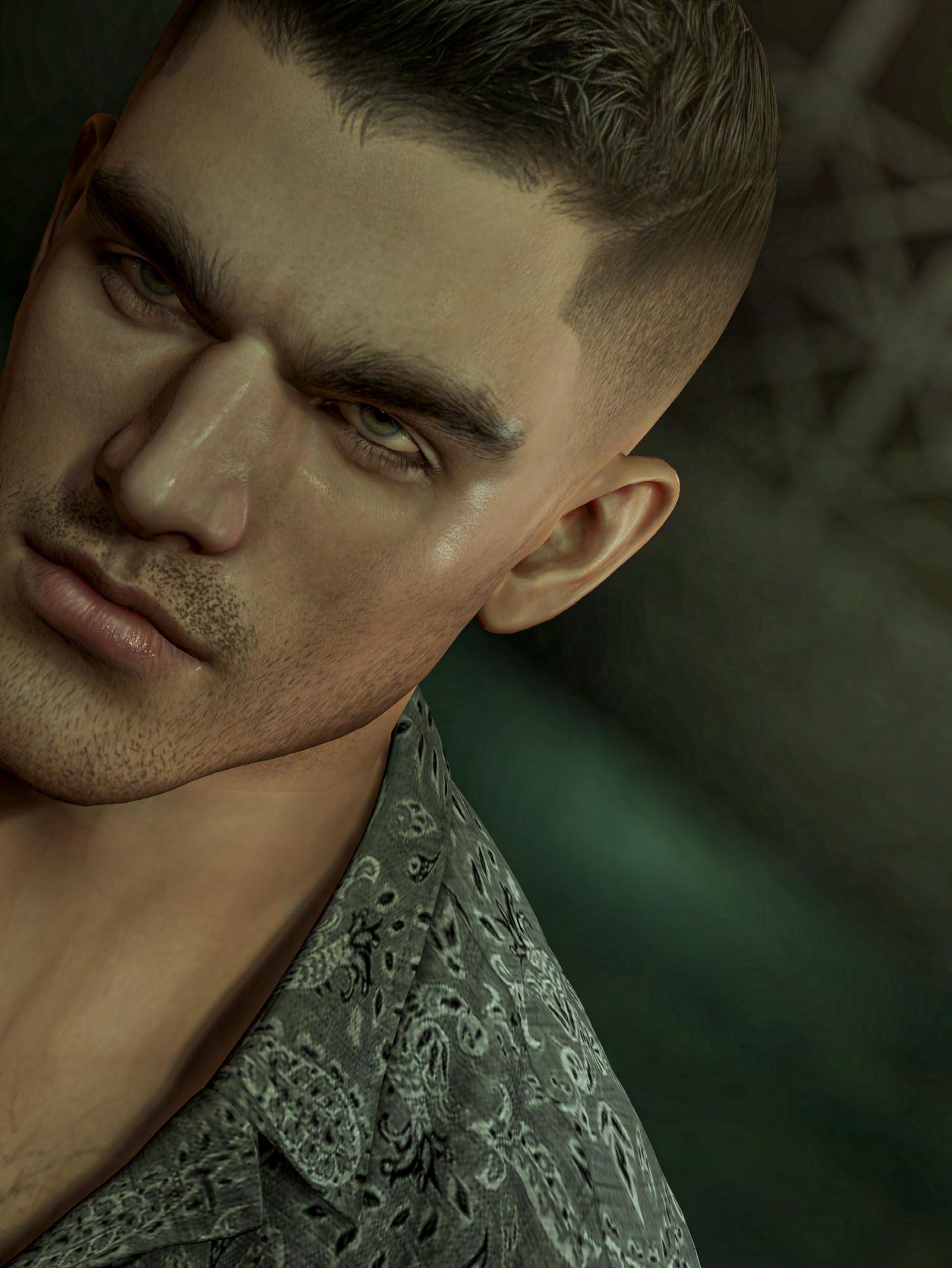 HAIR MODULUS VICTOR + HAIRBASE [MISTER RAZZOR] SHO + HEAD LELUTKA EON + BODY LEGACY + SKIN / ADD-ONS VOLKSTONE COLE SKIN AND FROWN + [AVAROSA] ENZO FACE ADDON + EAGLELUX FREDRICK FACE DETAILS + IZZIE’S FROWN LINES + FACIAL HAIR UNLEASH SAM STUBBLE BEARD + TATTOOS KARMAZZ BODY MOLES + BOLSON CHARLIE + ACCESSORIES RICHB. FERDY EARRINGS + ROZOREGALIA EDOR EARRINGS + [ SPOTCAT ] BAD GUY BENTO RINGS + TOP ASCEND FASHION BRONSON JACKET + PANTS LEGAL INSANITY FINN CARGO + SHOES JEYS DOMENTOR2 /E + POSE CKEY NIKOLAS + DECOR & CAT COMPANION: 8F8 CREATIONS