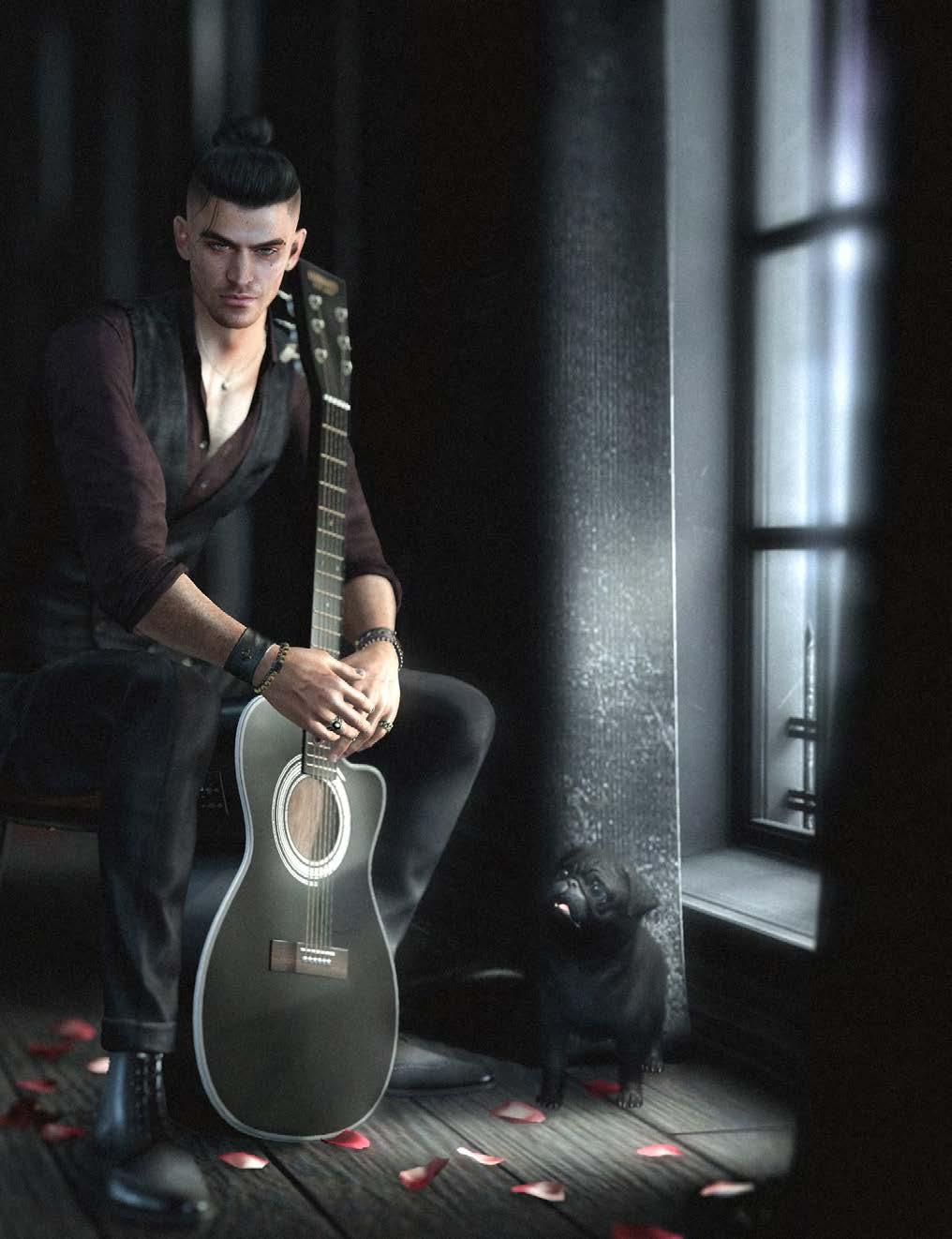 HAIR NO.MATCH NO STAINS BUN & EXTRA HAIR + VOLKSTONE KIRAN HAIRBASE & BUN + HEAD LELUTKA AARON + BODY LEGACY + SKIN / ADD-ONS FUOEY ITALO SKIN + IZZIE’S FROWN LINES + HOLD MOLES + FACIAL HAIR NOT FOUND HUDSON BEARD + BODY HAIR ADDON+ ARMS + OUTFIT [DEADWOOL] HART VEST & SEAN TROUSERS + SHOES CORDEWA MALE LEATHER BOOTS + ACCESSORIES REALEVIL INDUSTRIES BEAST NECKLACE + [Z O O M] MEN LEATHER & ROYER BRACELETS + RICHB KLAUS BRACELET + SIX FEET UNDER MAMMON RINGS + POSE & GUITAR ANIMOSITY 194 + COMPANION [REZZ ROOM] PUG ADULT ANIMESH + DECOR: VARONIS LA CHANDELLE SKYBOX