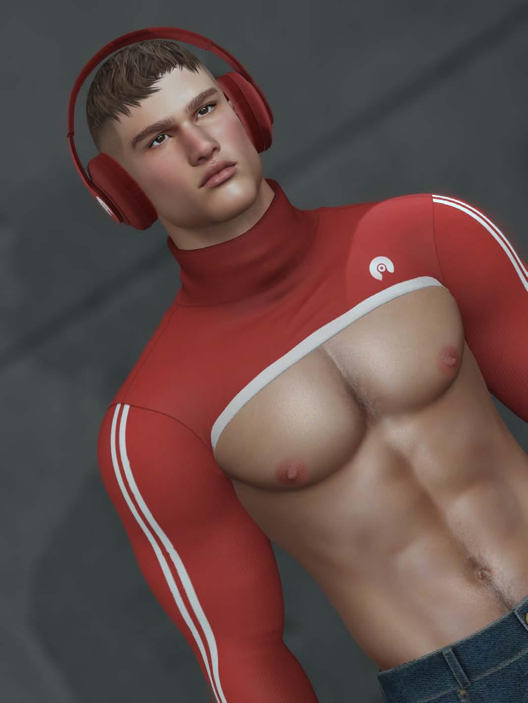 HEAD LELUTKA EVOX FORD + SKIN CLEF DE PEAU KELVIN PLUTO + VELOUR EROS BODY SKIN PLUTO — STYLED WITH: (on left) HAIR STUDIO EXPOSURE FAKE FRIENDS + TOP ALTERED STATE BAGGY PUFFER + AUREALIS BASIC LONGSLEEVE T-SHIRT + PANTS AUREALIS SILK PAJAMA BOXERS + SHOES L’EMPORIO&PL ASAHI + SEMLLER & HIEMAL BASIC COLLECTIONS SOCKS + ACCESSORIES BLAQUE REPUBLIC RIVET LUX GLASSES + ARNAUD GUNNER BAG + TRAUME WIRE RINGS + ARCHIVEFACTION INSENSIBLE RINGS ASH + (on right) HAIR STUDIO EXPOSURE FAKE FRIENDS + PANTS DOPE+MERCY GOOD DAY BRIEFS + ACCESSORIES SWALLOW GAUGED EARS + RICHB. RHYS EARRINGS + LODE COLLAR MUSHA + SHI. EMETH LEATHER CUFF