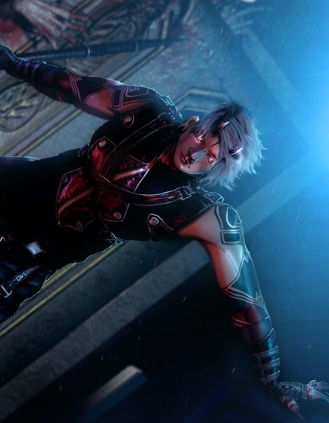 HEAD LELUTKA EVOX FORD + SKIN CLEF DE PEAU KELVIN PLUTO + VELOUR EROS BODY SKIN PLUTO — STYLED WITH: (on left) HAIR STUDIO EXPOSURE FAKE FRIENDS + TOP ARCHIVEFACTION CENSORED CORSET HARNESS + PANTS ARCHIVEFACTION CARABINER + SHOES ARCHIVEFACTION STABILITY CHELSEA BOOTS + ACCESSORIES SWALLOW GAUGED EARS + RICHB. LOST TUNNEL EARRINGS + LEN$ GLASSES 71 + ARCHIVEFACTION HORIZINTAL RINGS + SHI EMETH LEATHER CUFF AND STACK BANGLES + L'EMPORIO&PL CULT RINGS + DDL RULE BAG + EXPRESSION LELUTKA AXIS HUD FACE + (on right) HAIR STUDIO EXPOSURE VINTAGE + TOP SALEM STORMY JACKET + ACCESSORIES SWALLOW GAUGED EARS + RICHB. LEEDER EARRINGS + ATD BAGUETTE BUSTDOWN WHITE GOLD + SHI NHURA NECKLACE + NOCHE. NIPPLES PIERCING + VEXIIN BAGUETTE CUBAN BRACELET BLACK