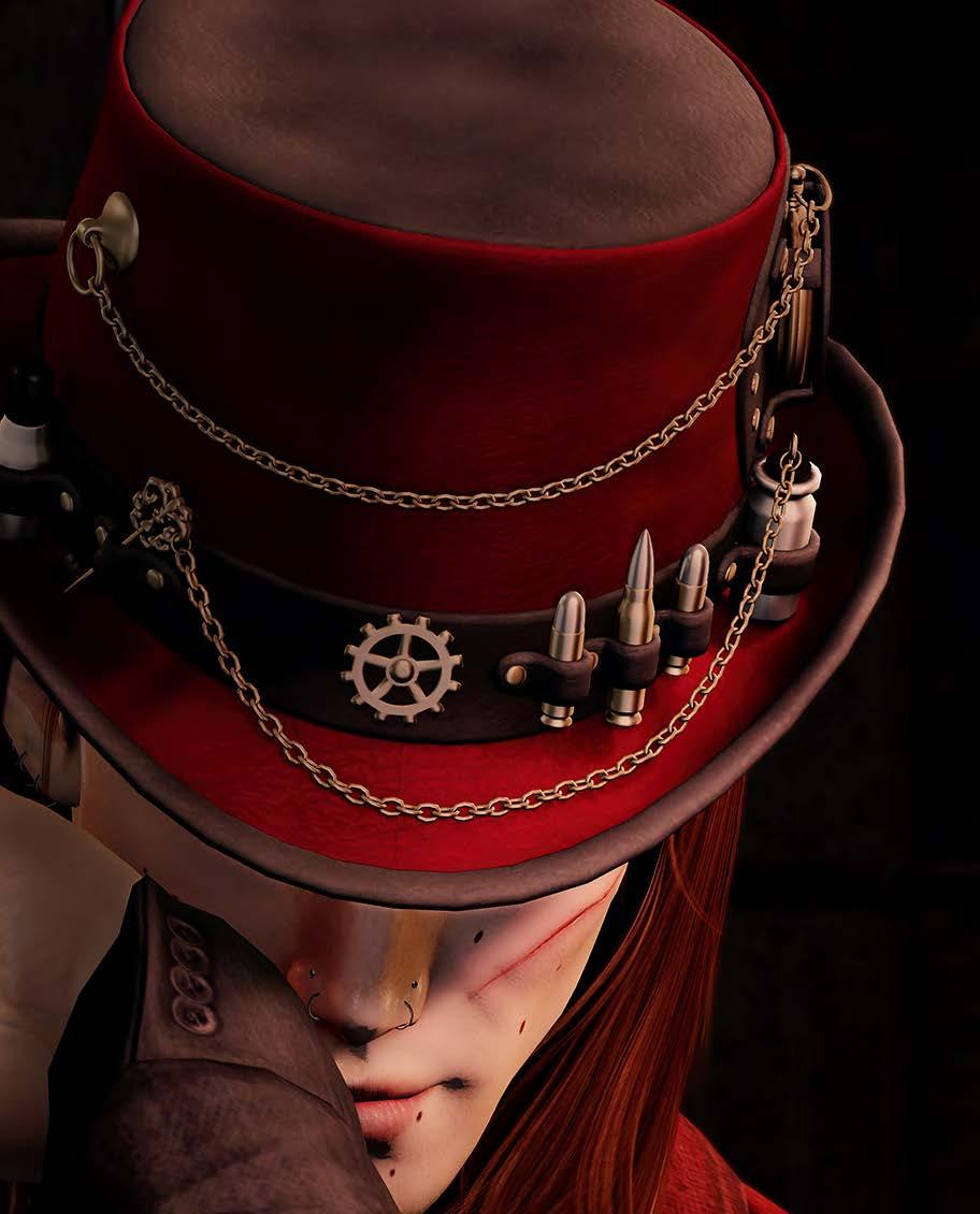 HAT & HAIR [CONTRAPTION]&RAVEN BELL: DECK CAPTAIN’S CAP AND HAIR + MASK [CONTRAPTION] CROSSROADS OUTFIT TOKSIK BLOODLUST TOP, PANTS, AND BOOTS + ACCESSORIES [CONTRAPTION] SP1NDL PROSTHETIC WAIST BELT + [THE WHITE CROW] SPYCAM 6000PXFS (on chest) + NEFARIOUS INVENTIONS ASTRO BOOSTER SET: TEN THOUSAND & CO. THE DOPESTATION (gacha): 9.TRAIN HOME RED + 8.TRAIN HOME GREEN + EX MACHINA PICCADILLY INFO KIOSK 1.1 + EYE OF MERCY LIGHTHOUSE V 1.2 + NOMAD MONITOR PYLON