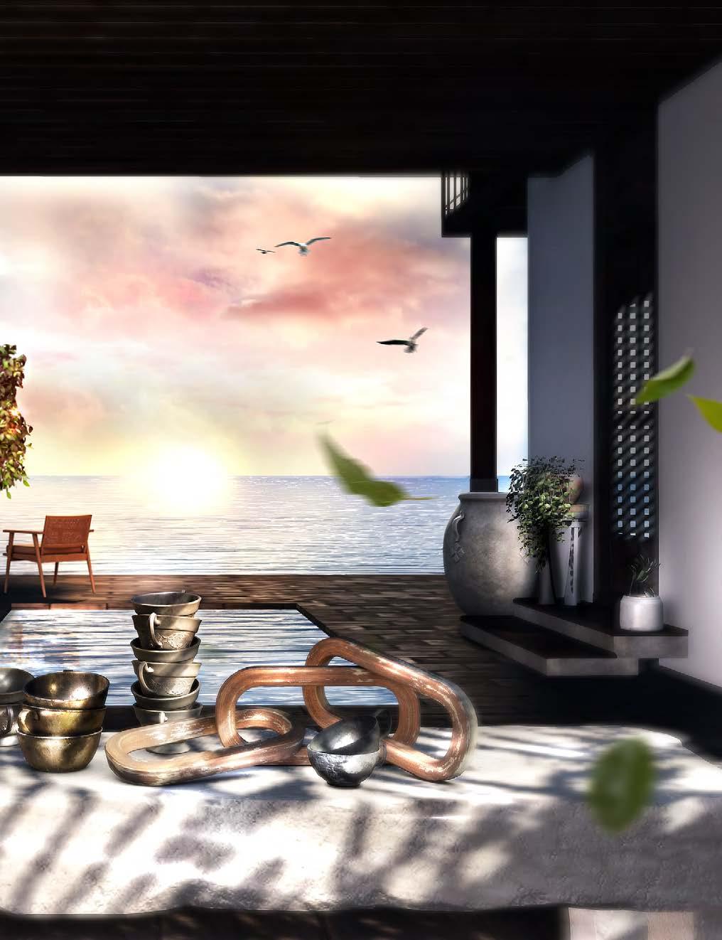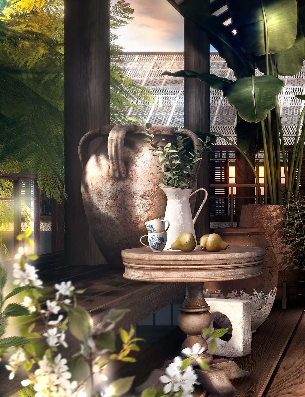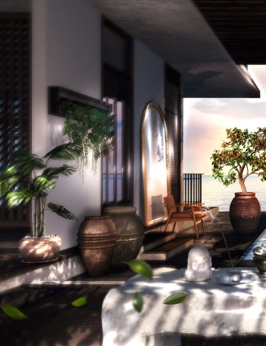 INCENSE HOLDER + MADRAS VASO LISCIO B, D, E & G POT DECOR + DECOR TREE (free gift) + OAK ANJA TEAK CHAIR (NATURAL) + KAZZA BYTHESEAPOT PLANTPOT & BYTHESEASUNTABLE STOOLPOT + console) + LUCIE ET LUCIAN WILAR VILLA BUNGALOW (used throughout, custom order only)