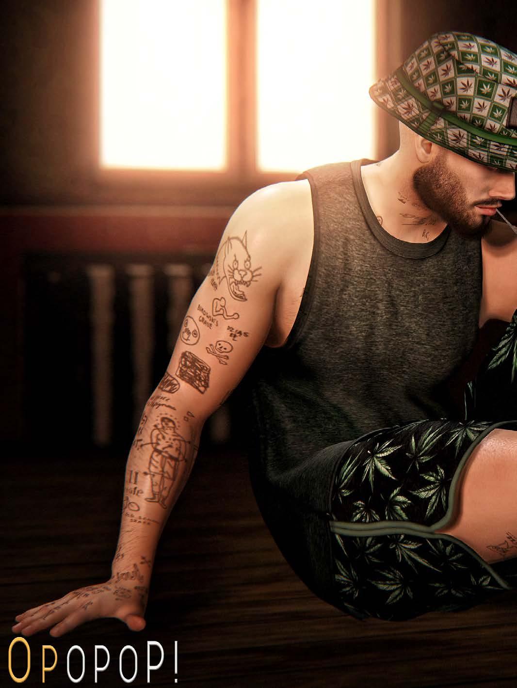 HAIR PHOENIX LEON + OUTFIT NOCHE. VICTOR SWIM SUIT TANK AND SHORTS + TATTOO IZZIE’S LEL EVO X WET BODY & FACE (shine)