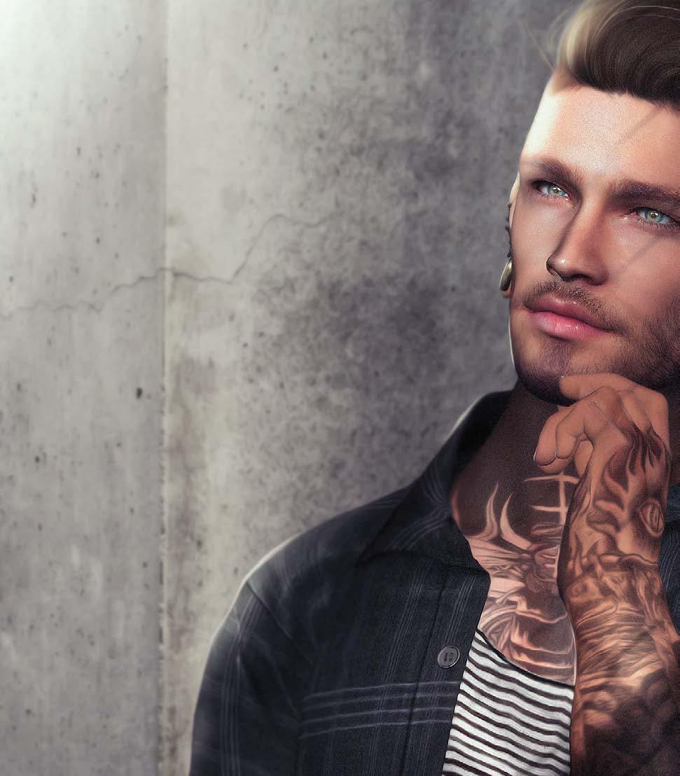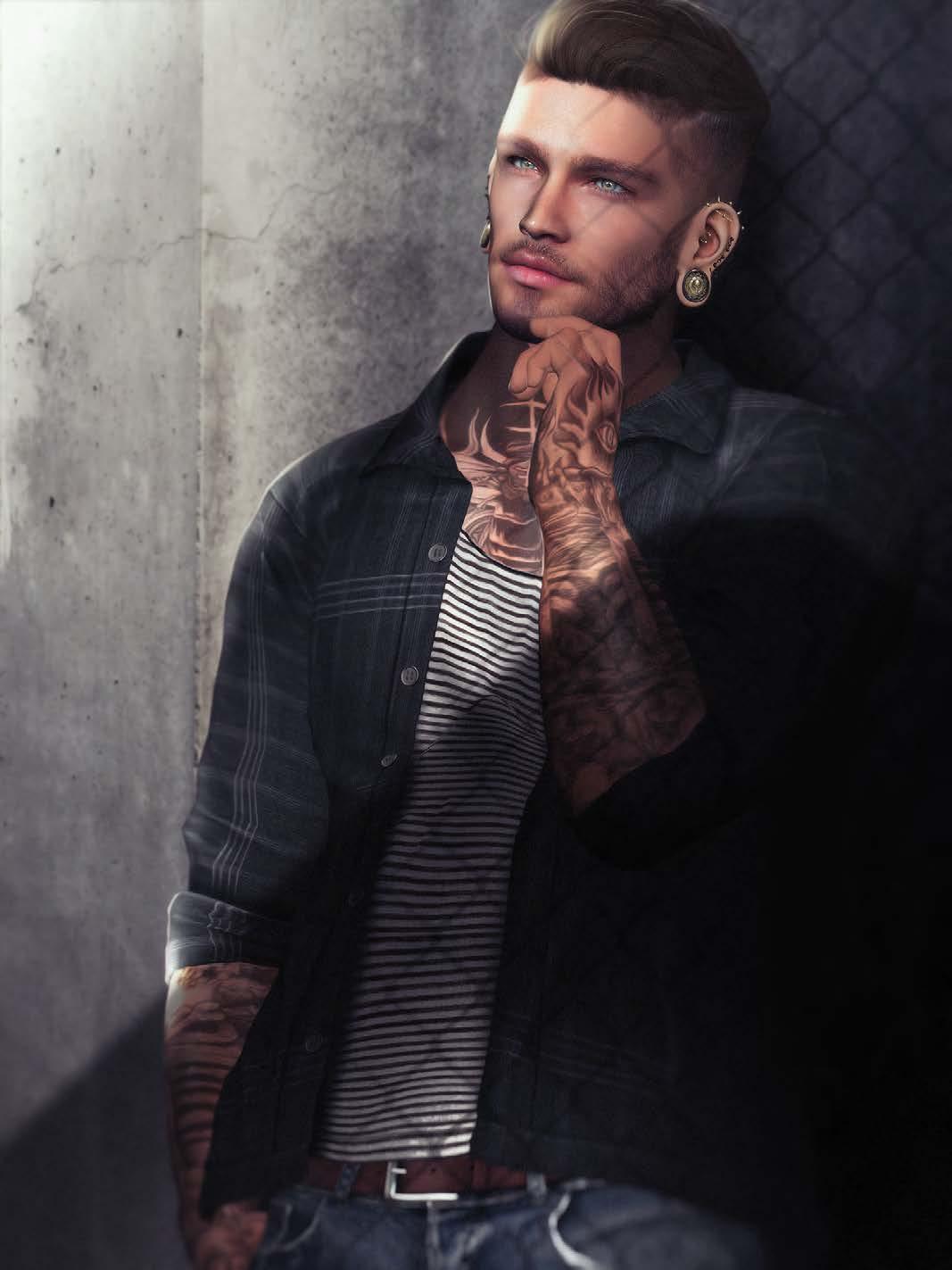 HAIR MAGIKA FAYE + HEAD LELUTKA PAXTON + SKIN CLEF DE PEAU BORIS FAIR + BODY SKIN VELOUR EROS SLIM FAIR + TATTOO GARDEN OF KU AEGIR + TOP LEGAL INSANITY RONAN