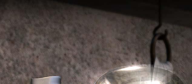 FANCY DECOR CERANTE CHISELED CONSOLE, CHAIN SCULPTURE & LEANING MIRROR (left) + PALO INCENSE NUTMEG SUMMER’S END CUPS & CUP PILE + RUSTIC METAL TEACUPS + QUAINT FOYER PLANT + NORTH OAK