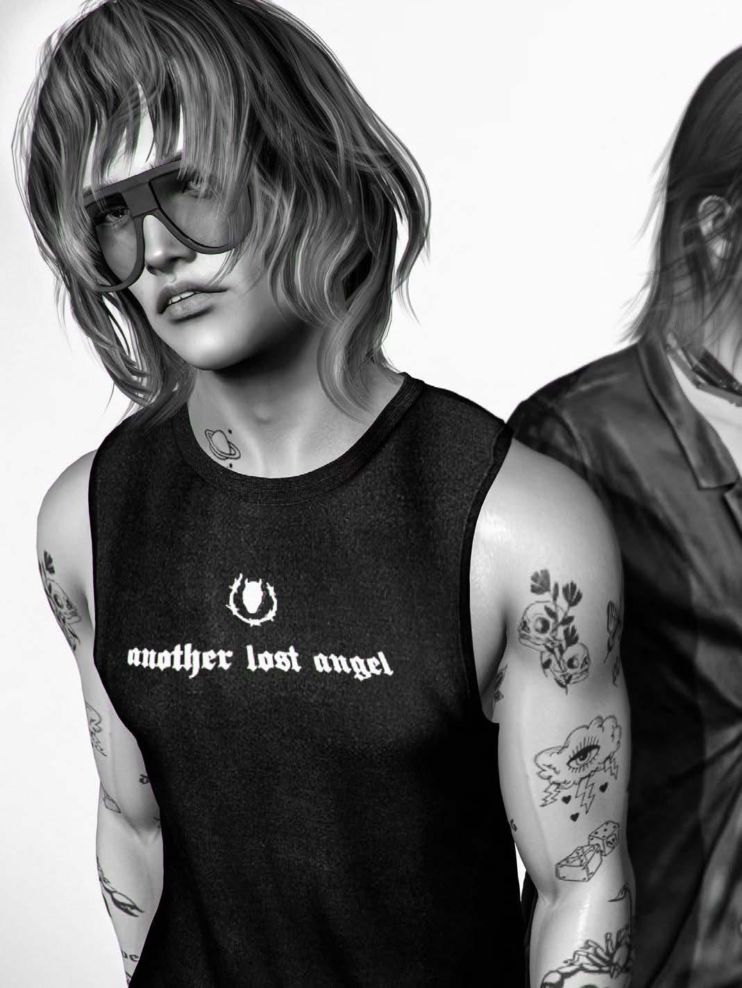 LEFT: HAIR TRAM J0916 + HEAD LELUTKA PAXTON + SKIN CLEF DE PEAU BORIS + BODY SKIN VELOUR EROS FIT + TATTOO AKUJI ZONDAAR + TOP AKUJI TANKTOP ANGEL + GLASSES LEN$ 17 ONYX