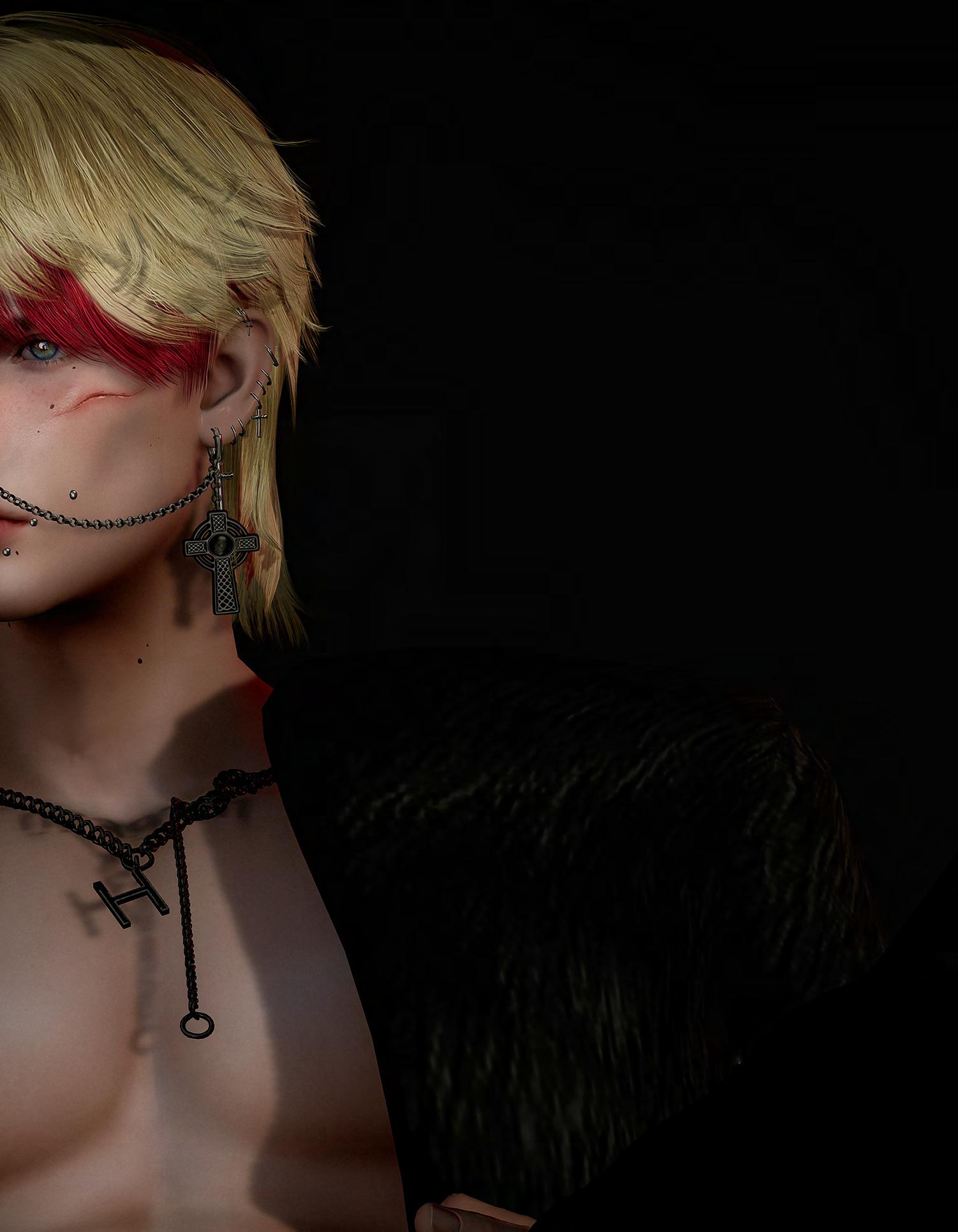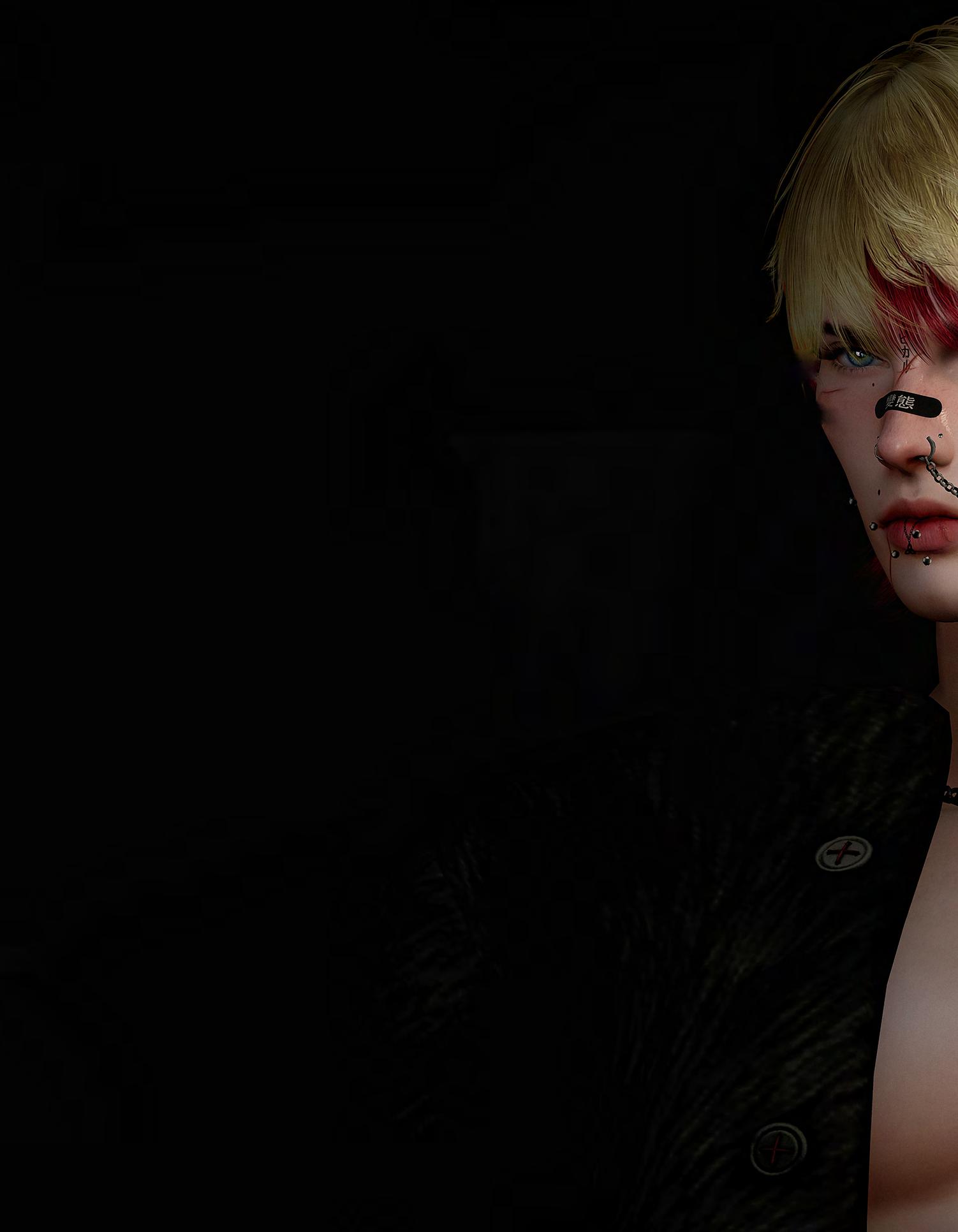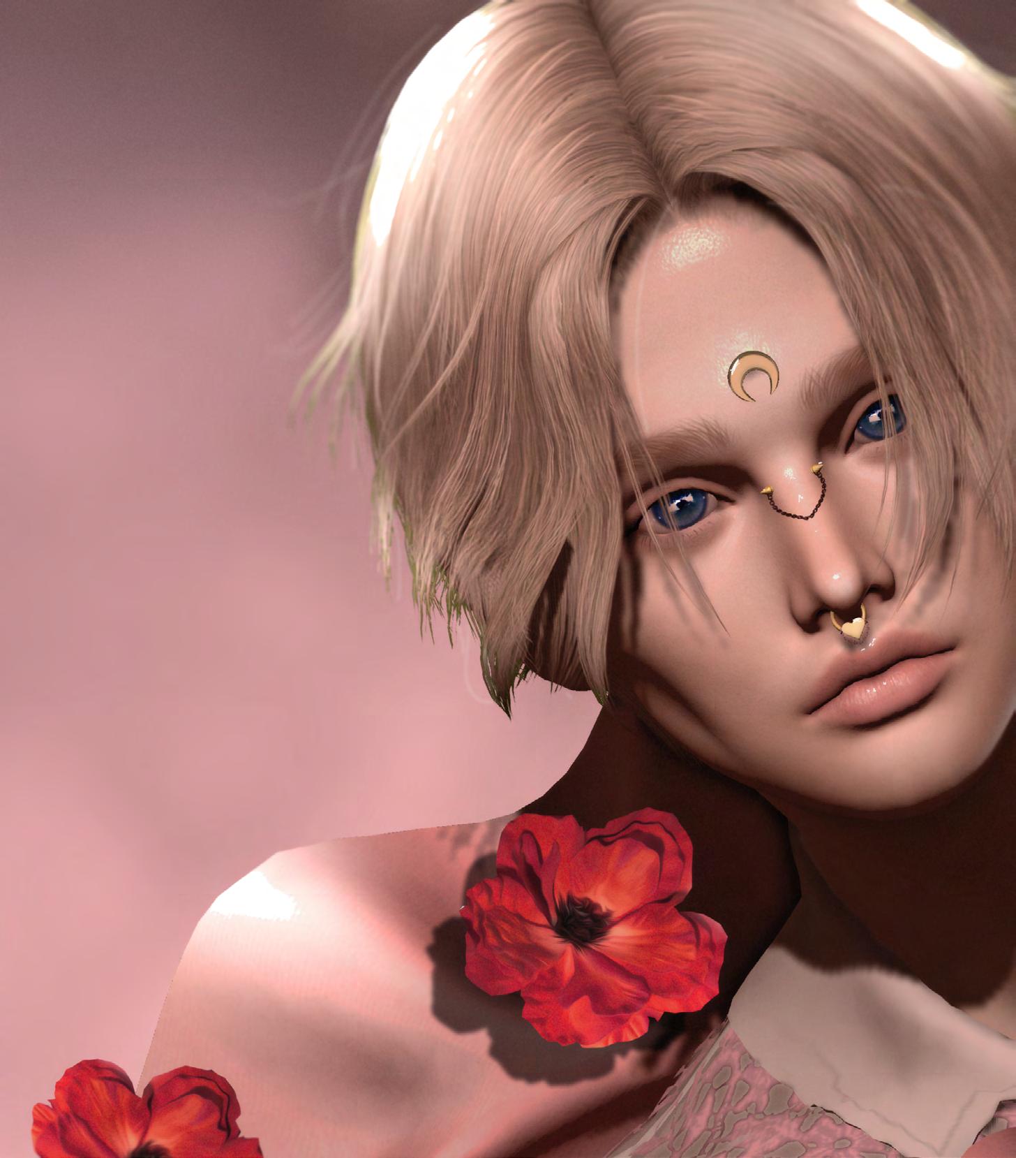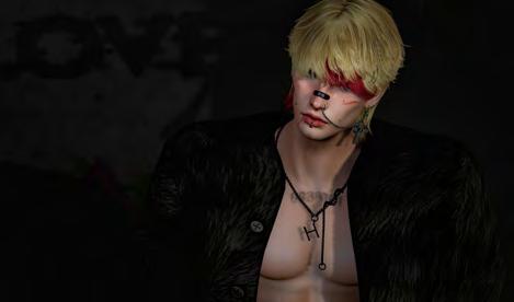 THE COVER: DAHVIE GLOOM, OWNER-DESIGNER OF GLOOM. + PHOTOGRAPHER SKIP STAHELI DAHVIE’S LOOK: HAIR DURA ANIME08 + SKIN GLOOM. MAKO SKIN + EYELID VELOUR DOUBLE EYELID + EYES GLOOM. BATTLE COLLECTION + PIERCINGS FEWNESS SWEET CHAINS + MOON MOONESS BINDI + OUTFIT FAKEICON MONET SHIRT AND JEANY RUFFLE STOLE