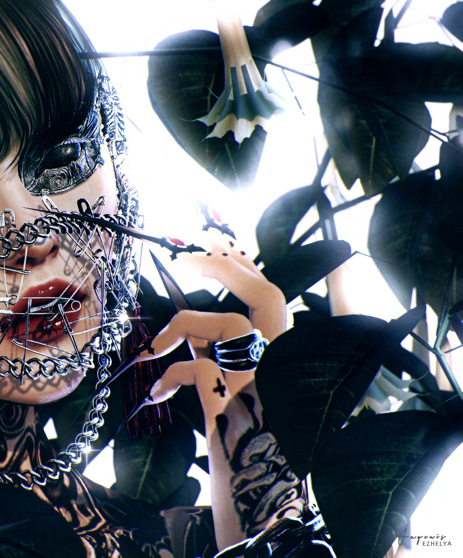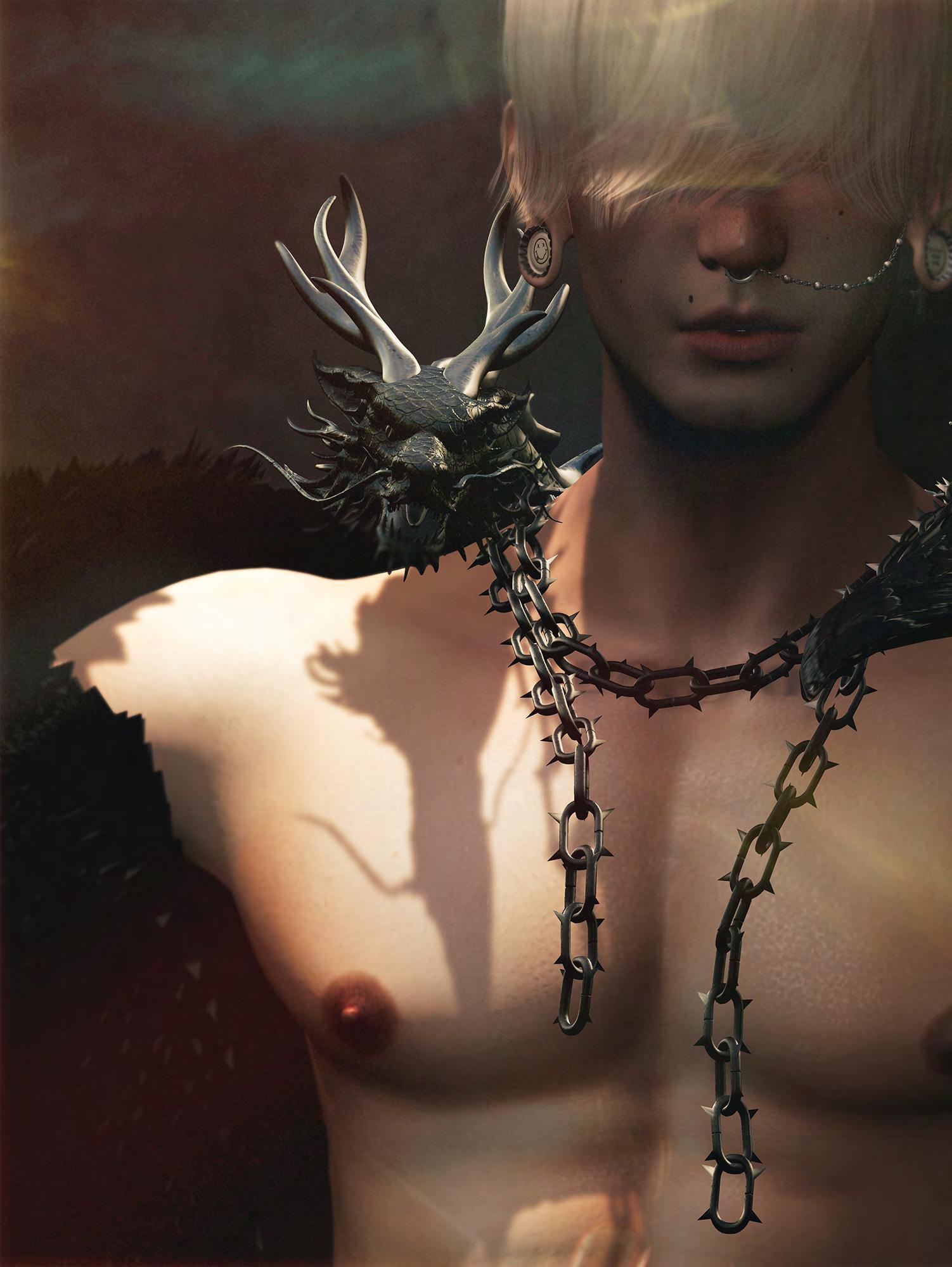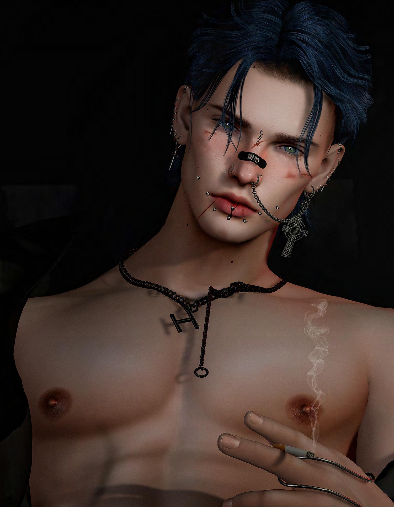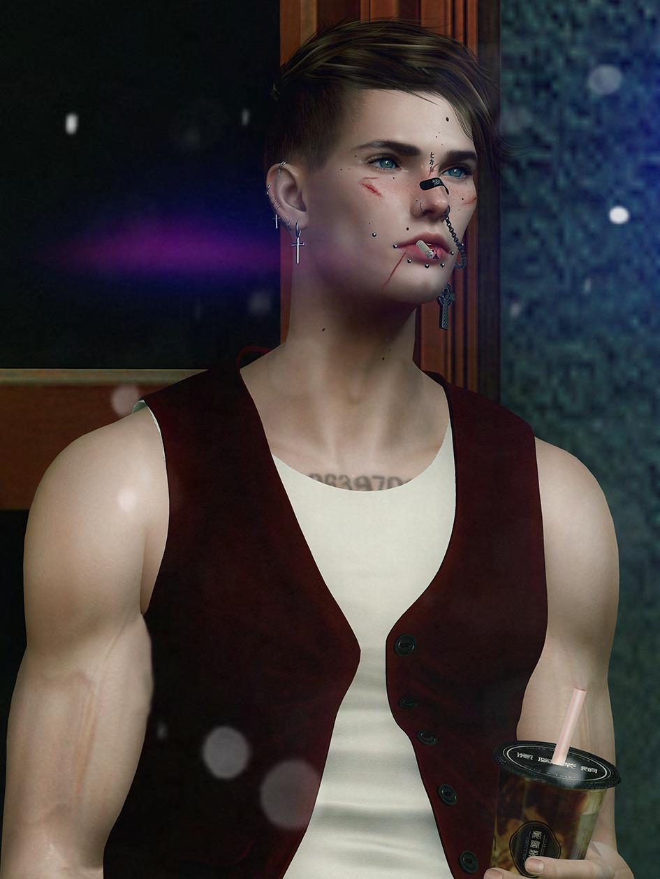 THE COVER: DAHVIE GLOOM, OWNER-DESIGNER OF GLOOM. + PHOTOGRAPHER SKIP STAHELI DAHVIE’S LOOK: HAIR DURA ANIME08 + SKIN GLOOM. MAKO SKIN + EYELID VELOUR DOUBLE EYELID + EYES GLOOM. BATTLE COLLECTION + PIERCINGS FEWNESS SWEET CHAINS + MOON MOONESS BINDI + OUTFIT FAKEICON MONET SHIRT AND JEANY RUFFLE STOLE