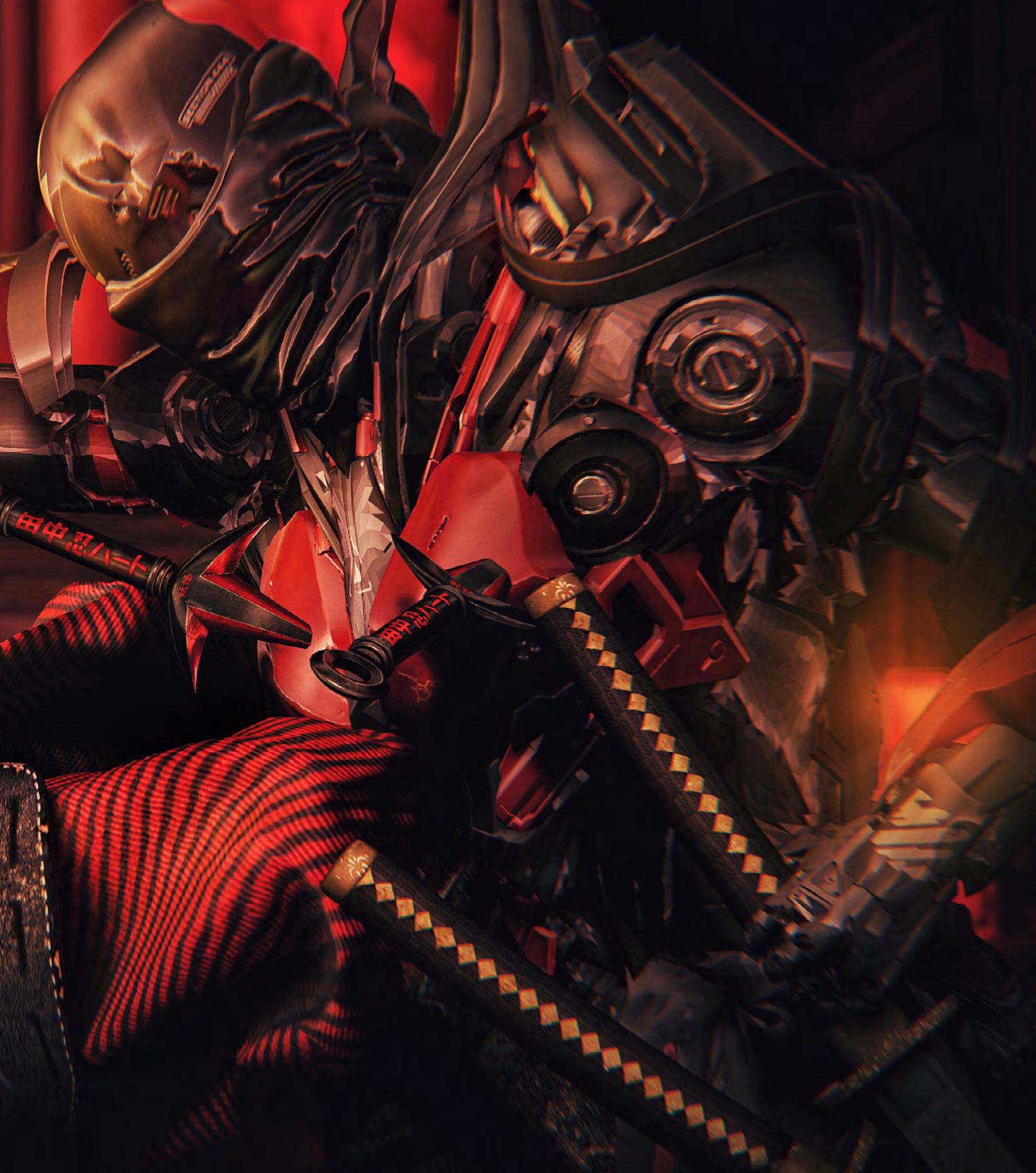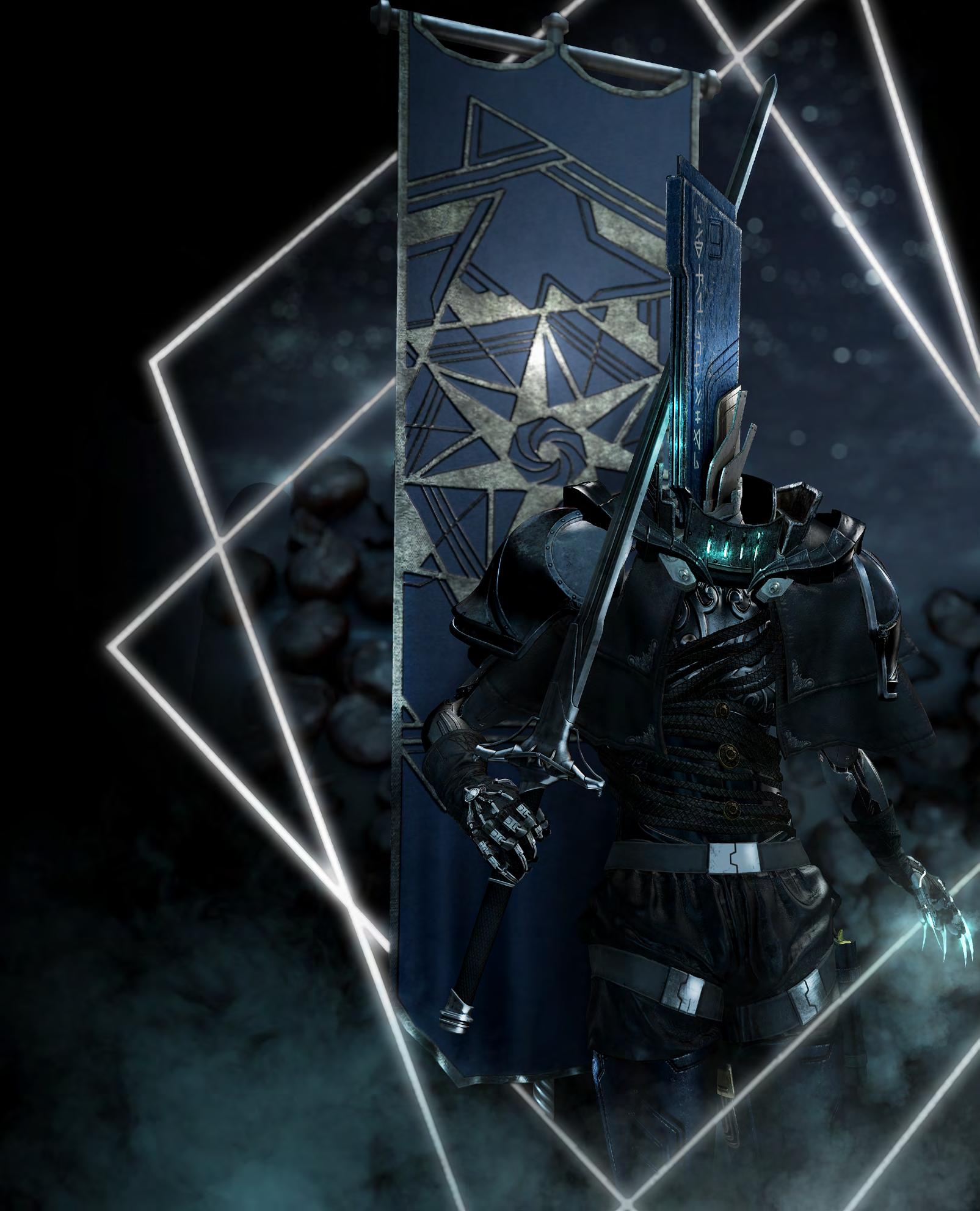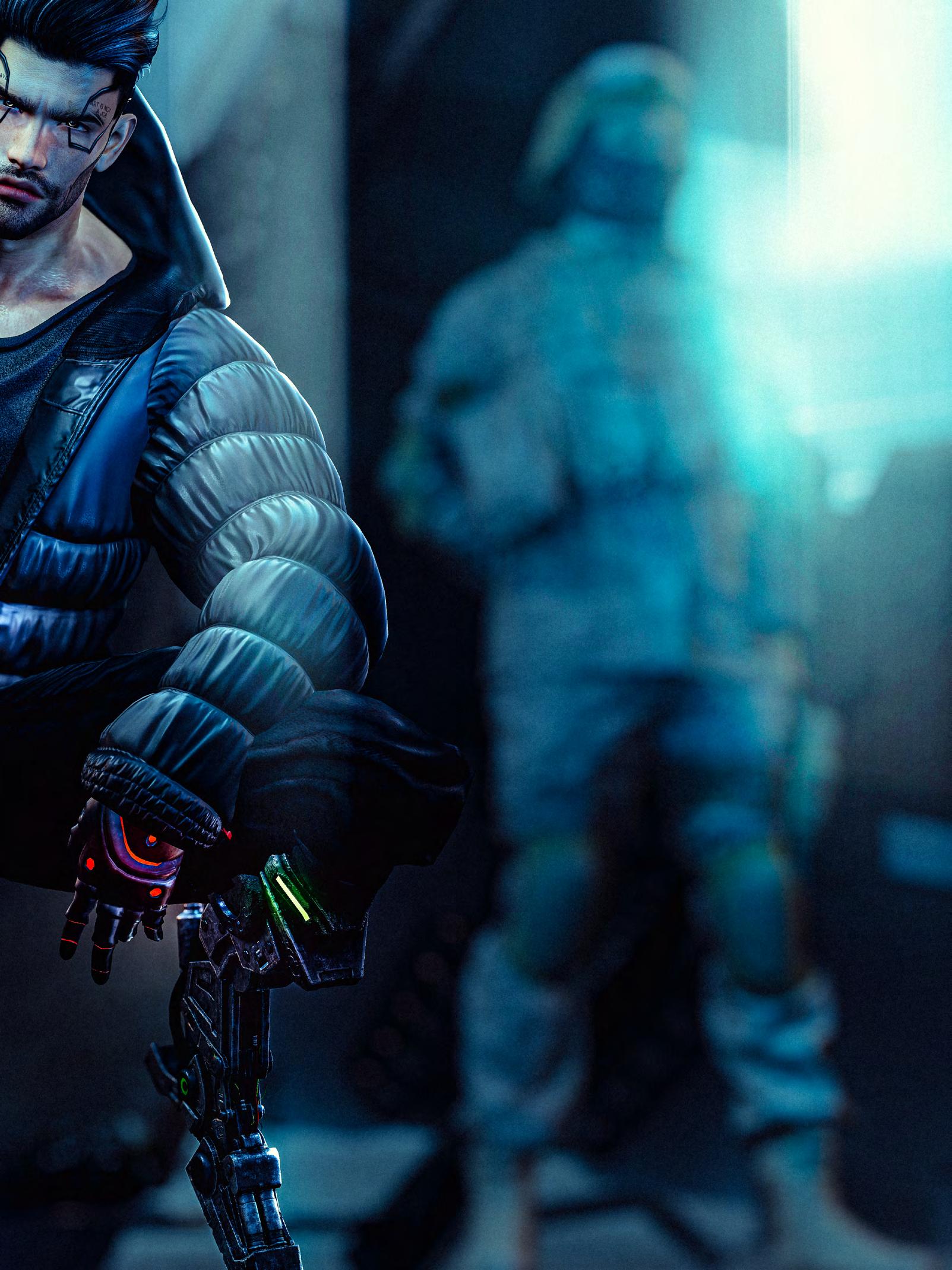 VAL’MORE PUFF JACKET + TANK DARKNESS + CYBER HEADPART + PROTOTYPE ARM, PANTS, MACHINA LEG + HUNT REVOLVER