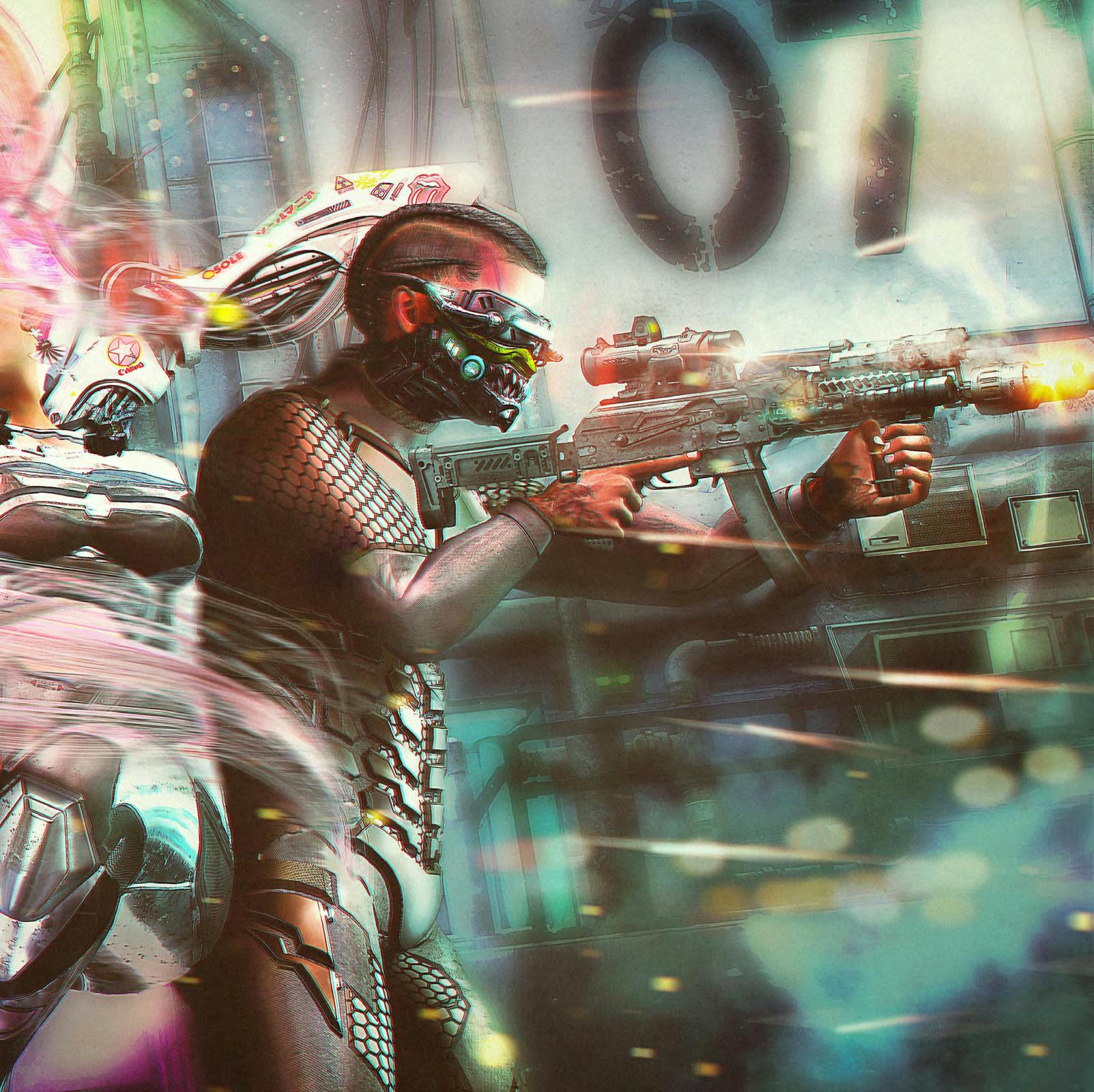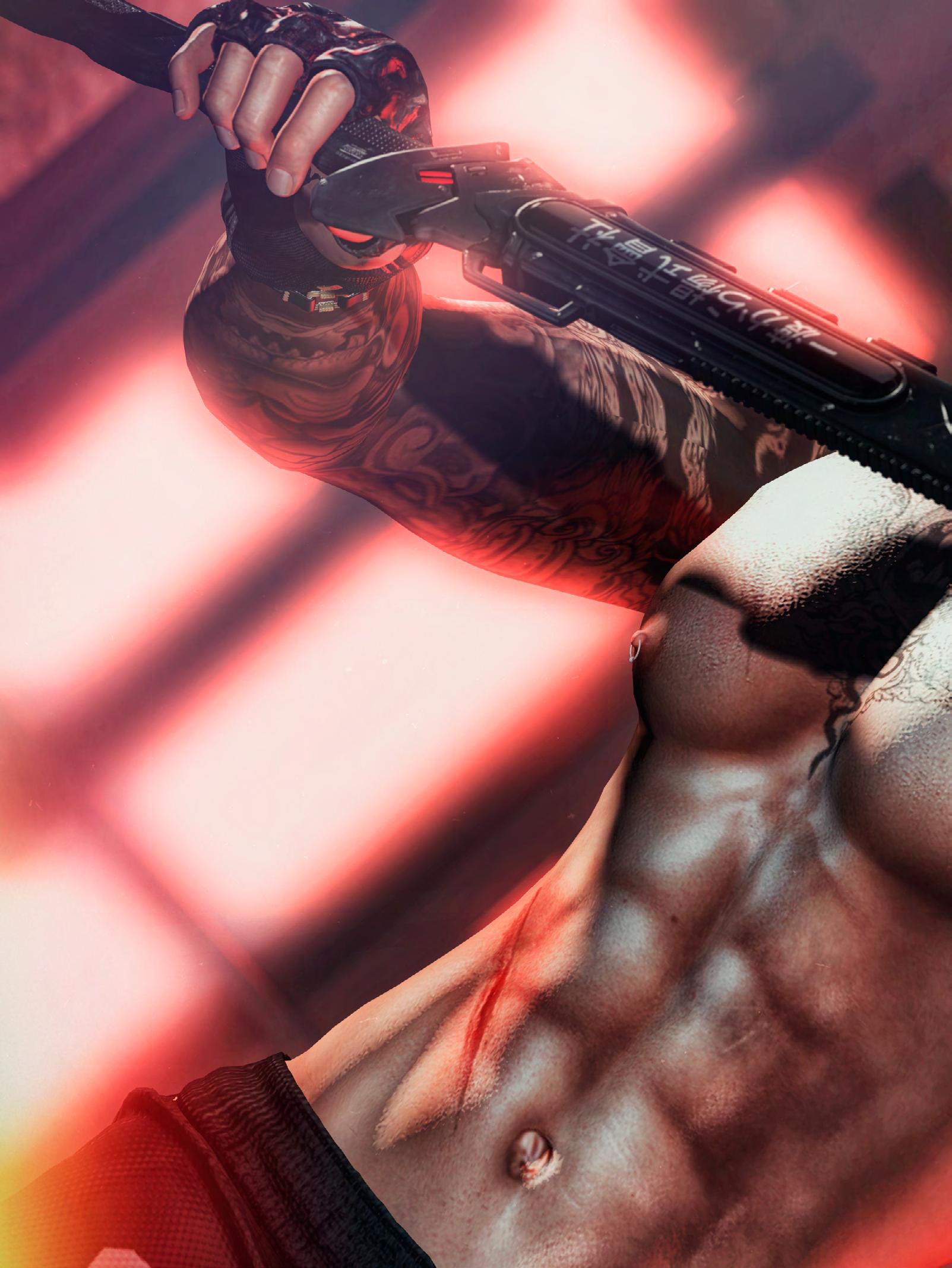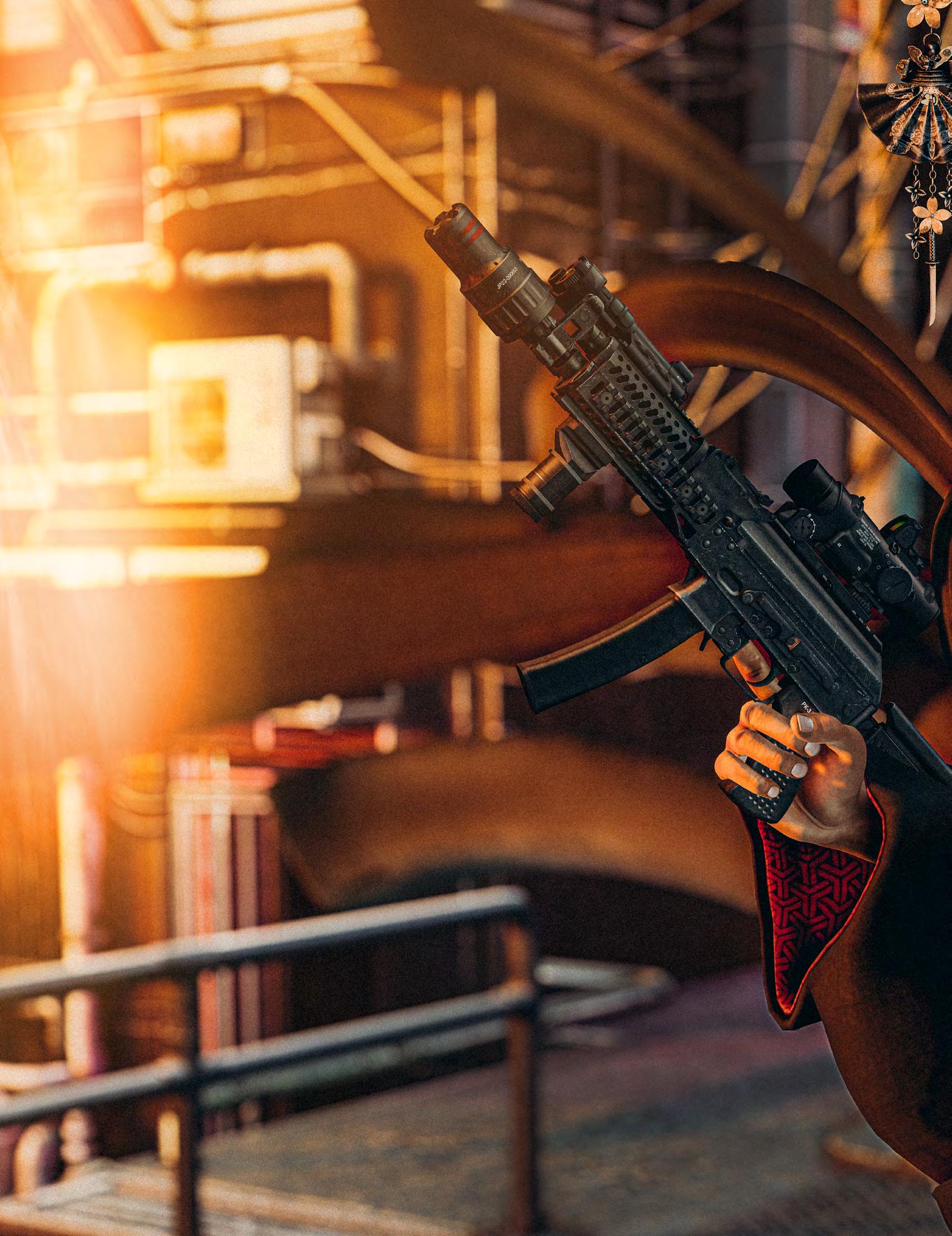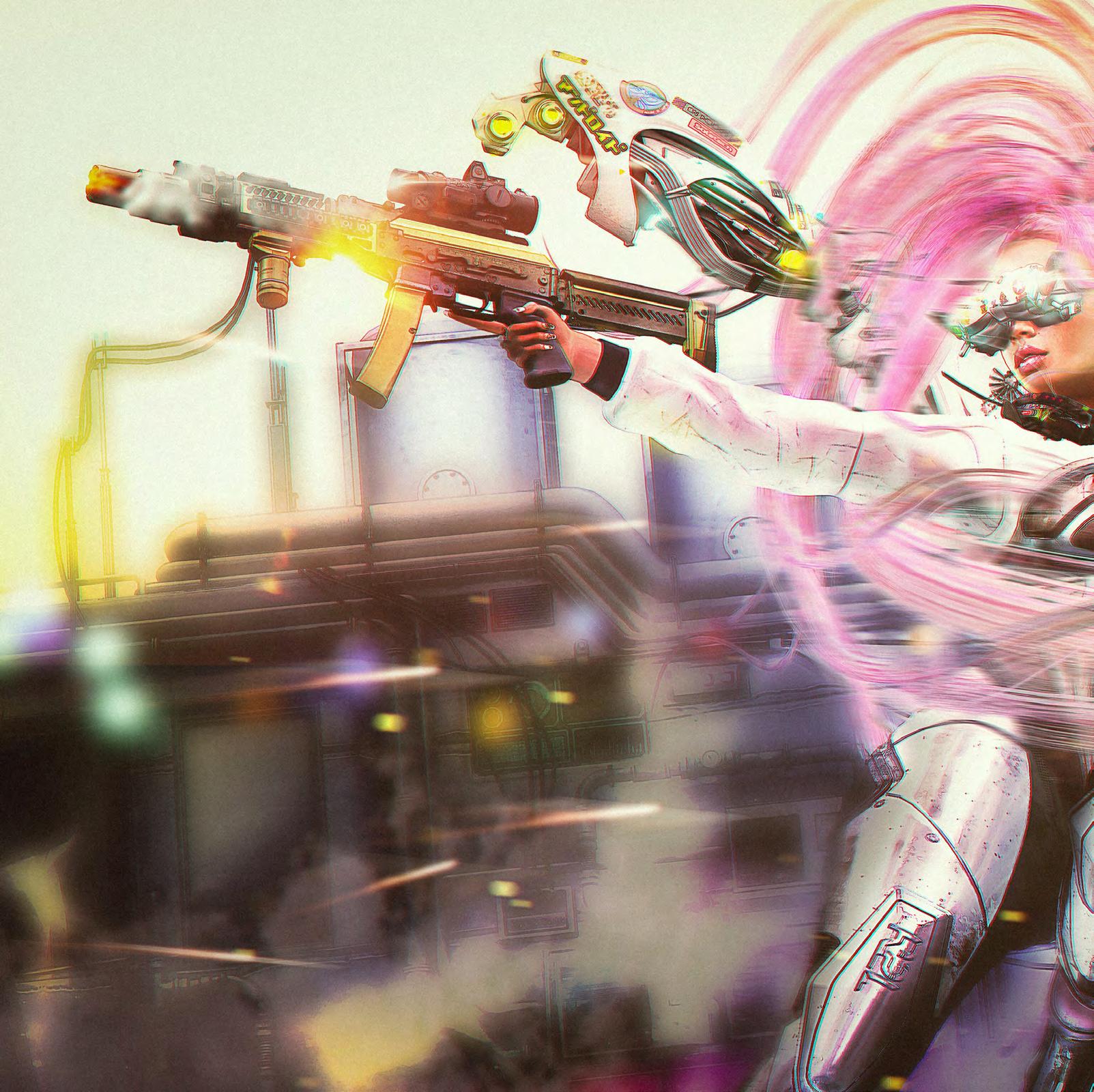 VAL’MORE PUFF JACKET + TANK DARKNESS + CYBER HEADPART + PROTOTYPE ARM, PANTS, MACHINA LEG + HUNT REVOLVER