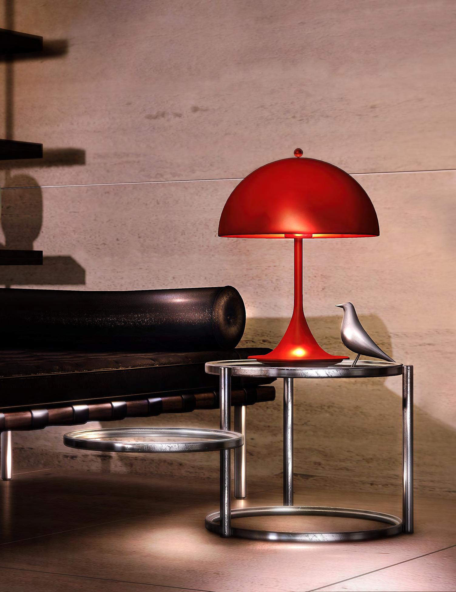FANCY DECOR CERISE TABLE (enlarged for this photo) + THORTON RUG + HENRIK PENCIL HOLDER & HENRIK ENDLESSLY / 2 (lamp) + YUGEN MEZHI TREE + LUCIE ET LUCIAN LUDWIG SKYBOX (custom-orders only)