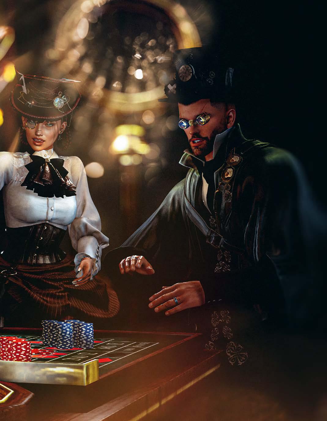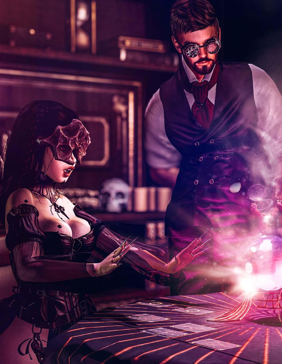 [CONTRAPTION] ATREUS FROCK COAT + DAPPER DANDY’S GLOVES + NOBLE’S TAILCOAT + SOSPETTOSO’S SLASHER GLOVES + MASKS (left to right): VERSICOLOUR GROWTH + THE NIGHT WATCHER + THE TRUTHSEEKER II + DECOR: FAR SEEING SET