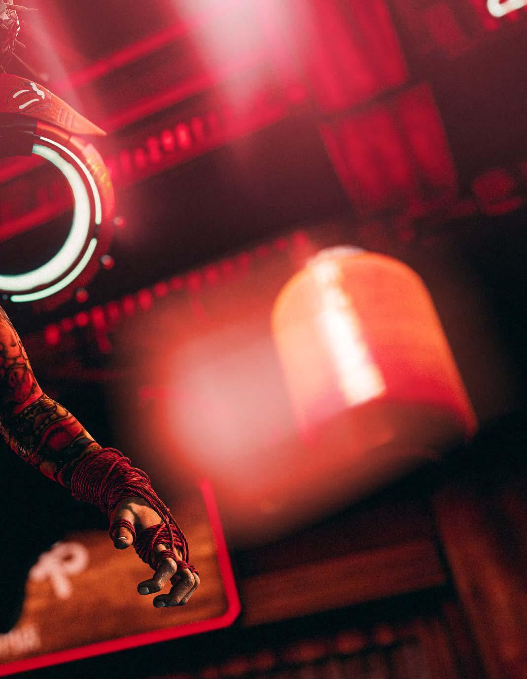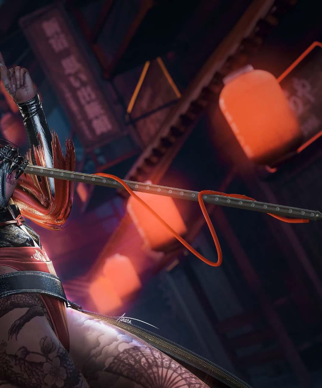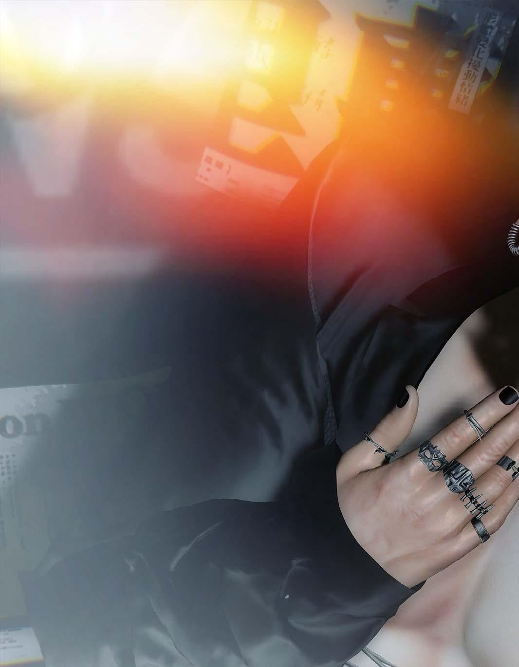 HAIR DURA-B122 + EYES GLOOM. RYUKI COLLECTION + OUTFIT DAVID HEATHER HEV JACKET + DESI TURTLENECK + ARCHIVEFACTION CENSORED CORSET HARNESS + CYBORG ARM UNHOLY HO-MUSUBI + EARRINGS & NECKLACE [ KUNST ] KATANA SET + HAND-ARMOR L’EMPORIO&PL DRAGON’S