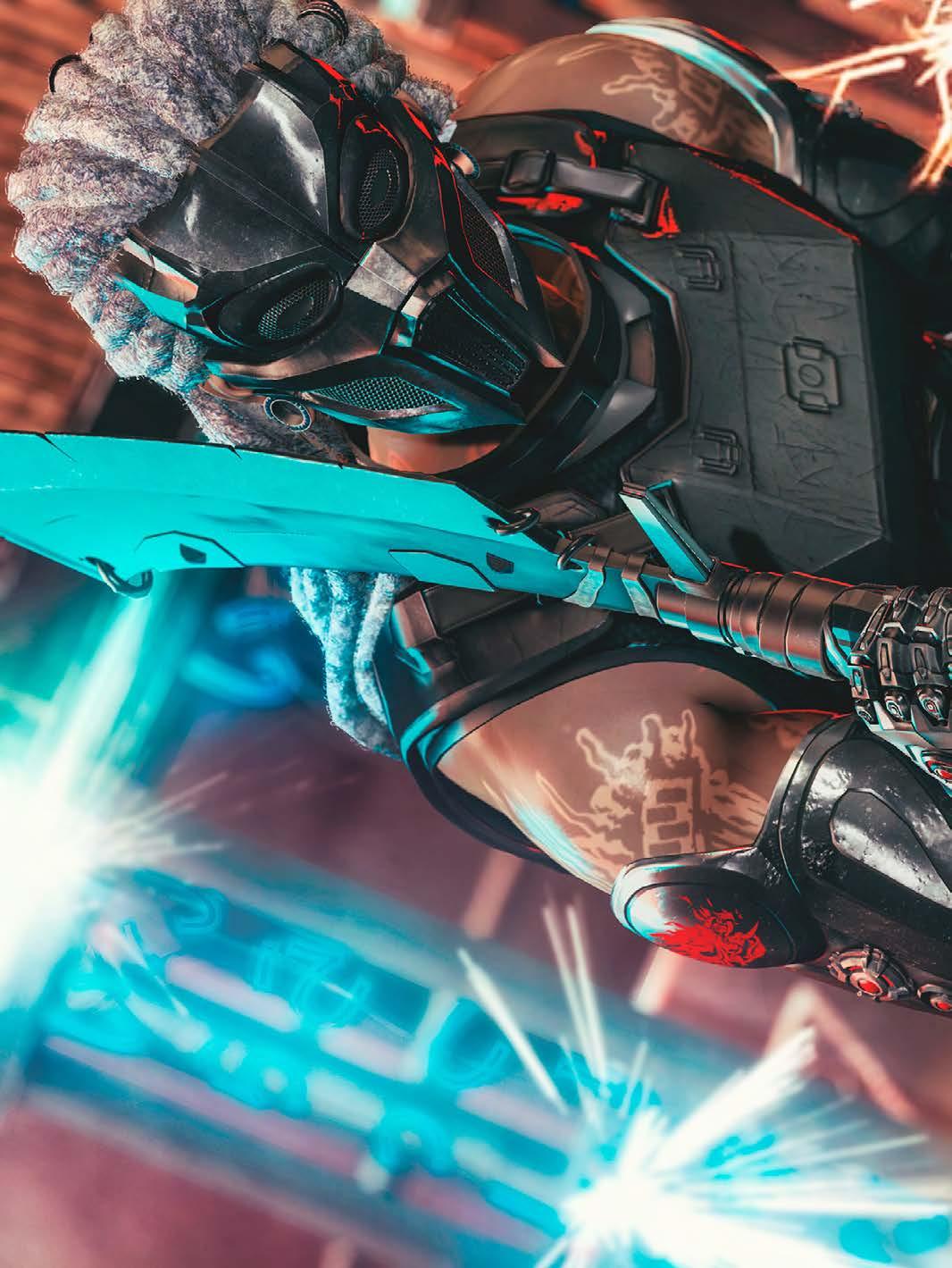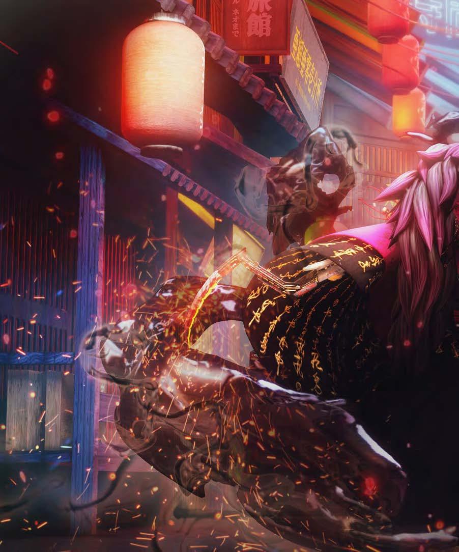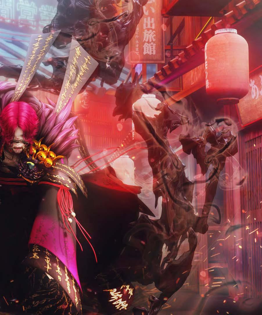 HAIR DURA-B122 + EYES GLOOM. RYUKI COLLECTION + OUTFIT DAVID HEATHER HEV JACKET + DESI TURTLENECK + ARCHIVEFACTION CENSORED CORSET HARNESS + CYBORG ARM UNHOLY HO-MUSUBI + EARRINGS & NECKLACE [ KUNST ] KATANA SET + HAND-ARMOR L’EMPORIO&PL DRAGON’S