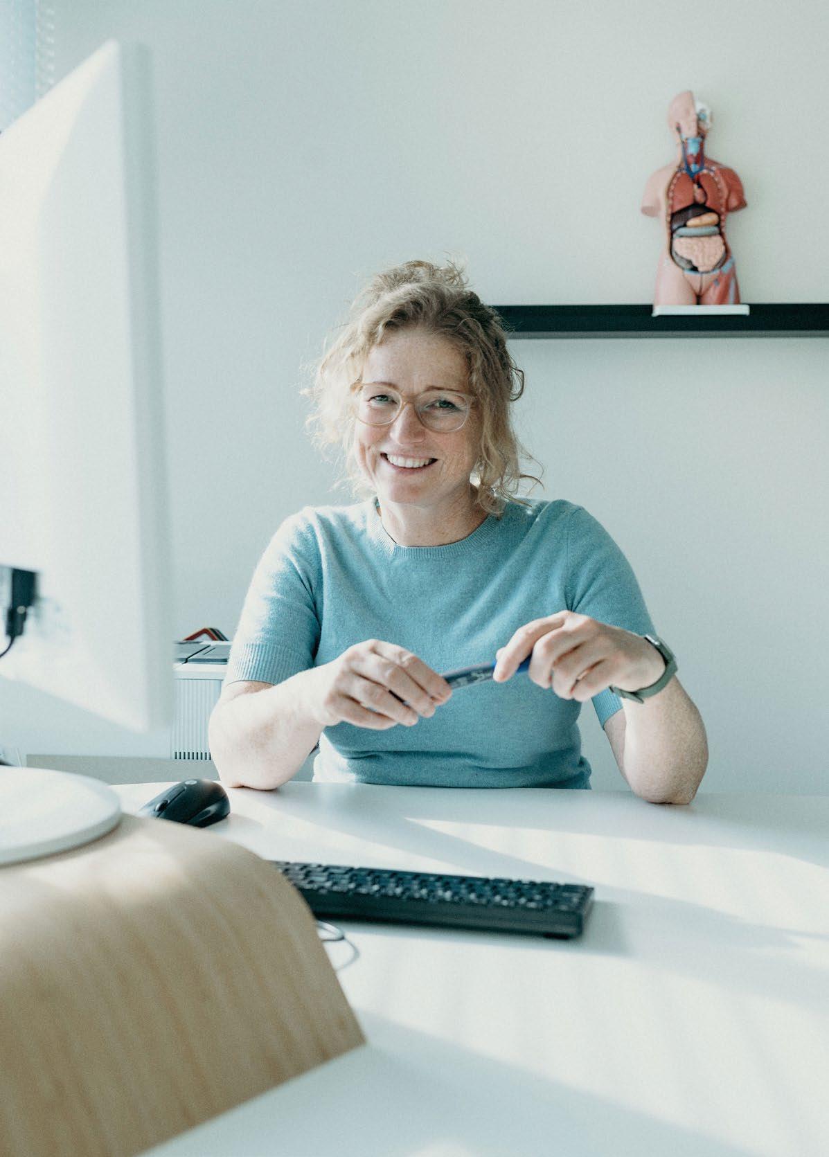 Van Sinderen doet promotieonderzoek aan het AMC en is business analist bij Ksyos. Online consultatie via Ksyos verbetert de e ectiviteit van doorverwijzingen, laat haar onderzoek zien. De druk op de tweedelijnszorg neemt af, de diagnostiek verbetert en kosten gaan omlaag. “Bovendien horen patiënten sneller de uitslag.”