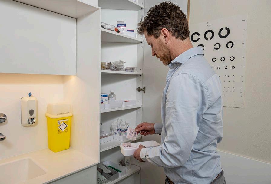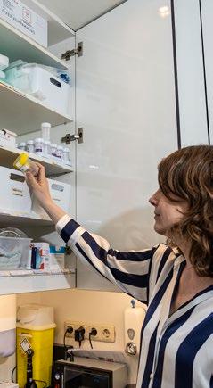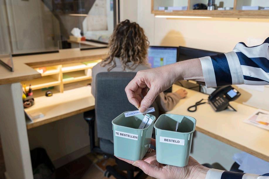 bedrijfsleven. ‘Ik wist wat Lean kan opleveren in bedrijfsprocessen. Als je overbodige handelingen uit processen haalt en zorgt voor meer stroomlijning, win je tijd. En die tijd komt de kwaliteit van je werk ten goede. In coronatijd ben ik een keer door ziekte ingevallen voor de assistente, samen met een ingehuurde zzp-assistente. Zij vroeg mij meerdere keren waar iets lag en ik had geen idee. We wilden de Lean-cursus gebruiken om de voorraad zo simpel en intuïtief in te richten dat bij wijze van spreken een willekeurige voorbijganger in onze praktijk dingen zou weten te vinden.’ Avenarius: ‘Met name in coronatijd merkten we dat de dingen soms gaan zoals ze gaan, maar dat dat niet altijd logisch is.’