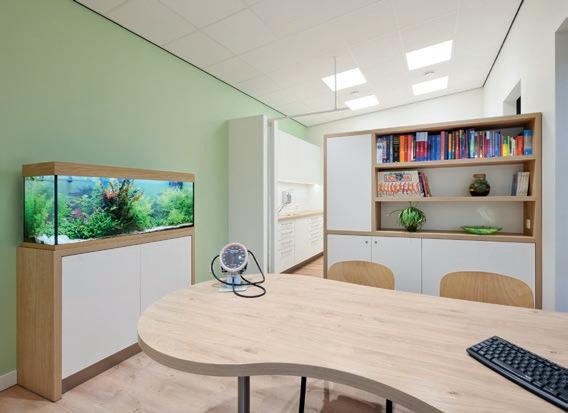 Een aquarium geeft patiënten wat afleiding in de behandelkamer, net als het wolkenplafond