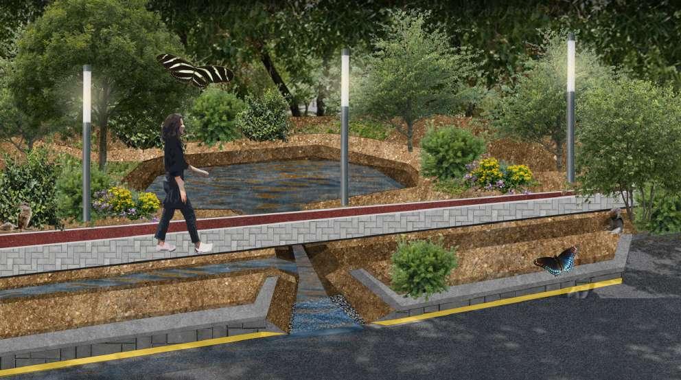 Se implementará una colocación de especies nativas por todo el parque para restaurar la flora nativa. Esto no solo crea un corredor natural para el agua, también para la fauna presente en la zona.
