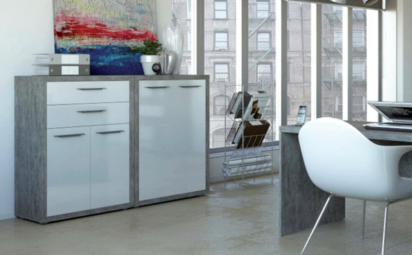 Mobile bianco. Con 4 cassetti e anta con top vassoio finitura cemento. 90x41x87,5h cm. EL245BC