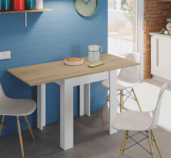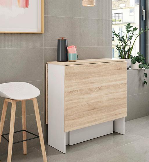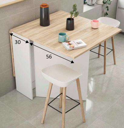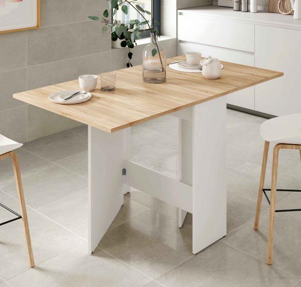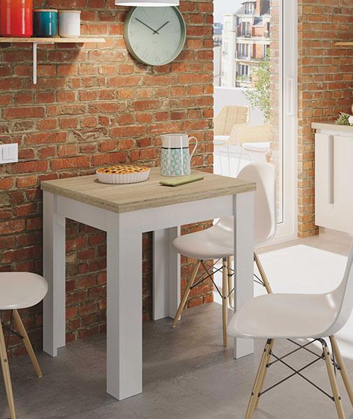 Tavolo ausiliare Livre. Di colore bianco e rovere. 67x67/134x79h cm. 0F4589A