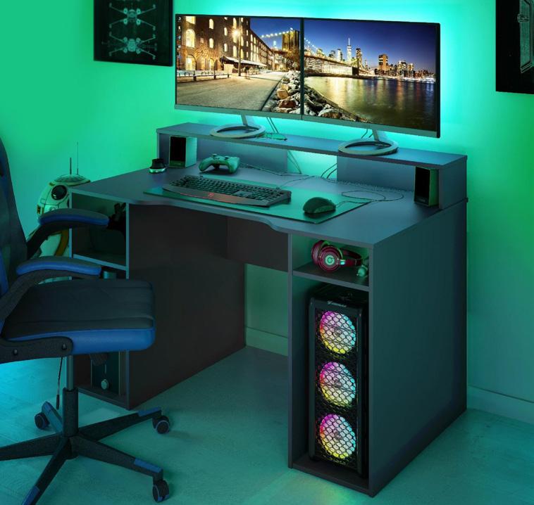 Scrivania Gaming. Reversibile, ottimizzata per i videogiocatori ma adatta anche per uso ufficio. 136x67x88h cm. 004601Z