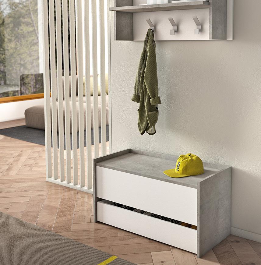 Scarpiera a 2 ante e 1 cassetto. Di colore rovere e cemento. 90x35x110h cm. BS5580K67205