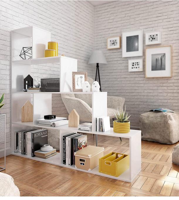 6 99 Libreria Dalida. Di colore bianco/cemento. 90x25x180h cm. 0L2252A 99 Libreria multiposizione. Di colore bianco Artik ossido. 80x25x180h cm. 0X2253A Libreria Klum. Di colore bianco lucido. 145x29x145h cm. 002255BO 99 Box libreria Cubi. Di colore bianco Artik e rovere Canadian. 110x28x108h cm. 0F2254A 79,90 Librerie per tenere in ordine libri e oggetti di uso quotidiano.