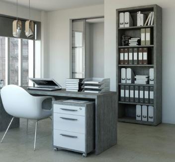 Libreria 3 vani. Di colore cemento e bianco laccato. 120x35,6x195h cm. LB0747K56104
