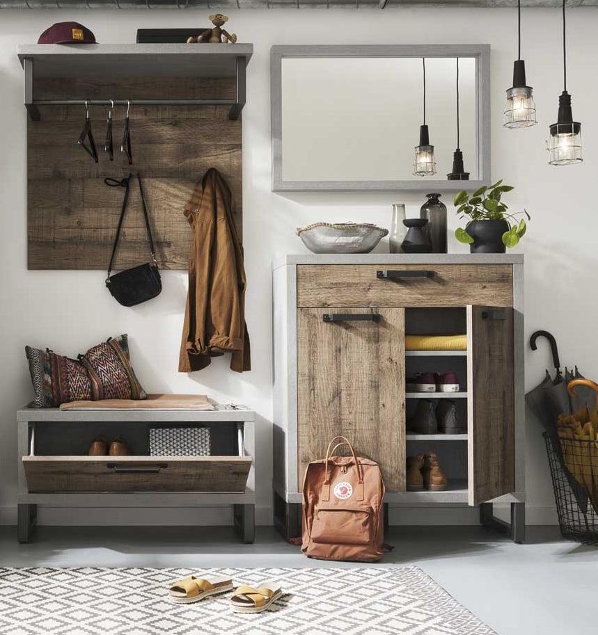 Pensile appendiabiti. Di colore rovere e cemento. 90,3x35x83,8h cm. PN5582K67204