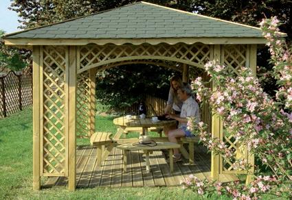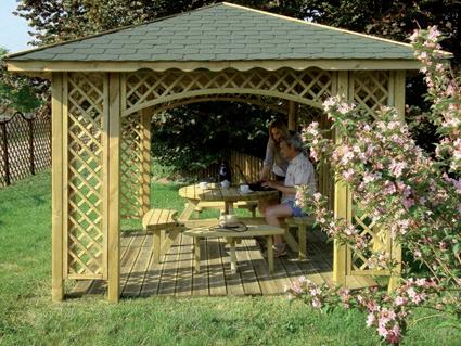 Gazebo Trentino. Con grigliati, coperto con listoni (tegole canadesi escluse). HLBD60149