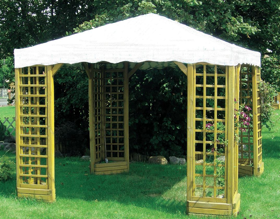 Gazebo Aosta. Completo di grigliati, fioriere integrate ad ogni angolo e telo in PVC di colore bianco. HLBD60026