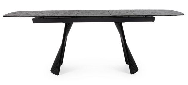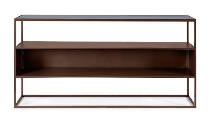 Struttura in acciaio, verniciata a polvere epossidica. Piano in vetro temperato.