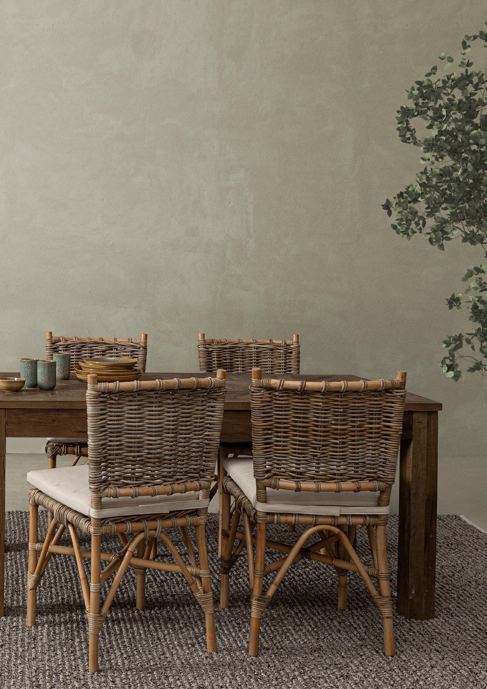 Riprende elementi della decorazione rustica, vasi di argilla o mobili in legno.