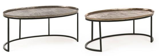 1, 2, 3, Piano in MDF verniciato. Gambe in acciaio verniciate a polvere epossidica. Gambe da assemblare. 4, Struttura in acciaio, verniciata a polvere epossidica. Piano in vetro. Gambe da assemblare. tavolini e carrello 5, Struttura in acciaio con finitura ottonata. Piano in marmo.Comprensivo di portabottiglie 6, Struttura in acciaio con finitura ottonata. Piano in marmo. Porta riviste in vera pelle. 7, Struttura in acciaio, verniciata a polvere epossidica. Piani in vetro temperato.