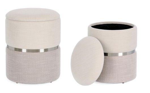 7, 8, 9, Struttura in MDF. Rivestimento in poliestere effetto ciniglia. Densità imbottitura 45kg/m3 . Maniglia decorativa in similpelle.