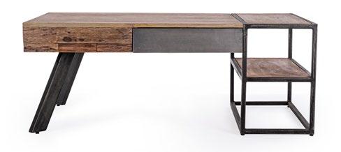 3, 4, 5, 6, Base originale riciclata in acciaio, piano in legno riciclato. Finitura a base di nitrocellulosa. Il legno riciclato prevede in produzione ritagli di legno a copertura dei fori originariamente presenti nel prodotto. Dato l’utilizzo di diverse tipologie di legno, eventuali fessurazioni sono da considerarsi come caratteristica naturale di questo articolo.