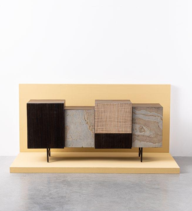 La materia: i materiali, le loro suggestioni, l’origine che si racconta in strutture e venature. I trattamenti che esaltano e connotano. Il vetro nero bocciardato, il legno riciclato.