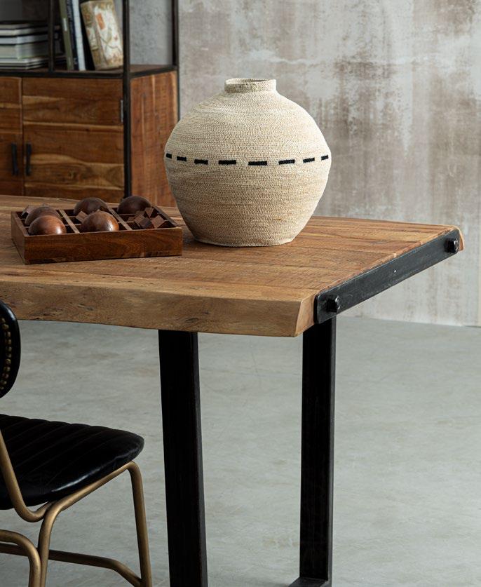 2, Struttura in acciaio. Piano in legno di mango. Comprensivo di portabottiglie e portabicchieri. Trattandosi di produzione artigianale ogni modello puo’ variare in piccoli particolari costruttivi. Eventuali piccole crepe o spaccature sono da ritenersi caratteristiche proprie al naturale lavoro di recupero.