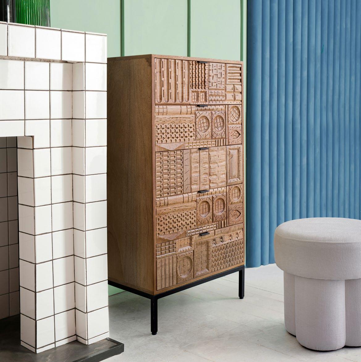 3, 4, 5, 6, Struttura in MDF. Rivestimento in similpelle. Densità imbottitura 40kg/m3 . Con maniglia decorativa.