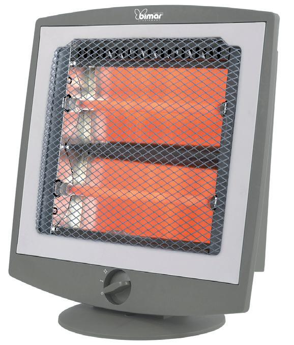 radiante ad infrarossi al quarzo Bimar. Con interruttore di sicurezza antiribaltamento, 2 resistenze al quarzo e griglia frontale di protezione. HR319