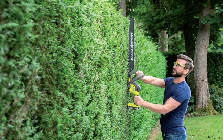 Tagliasiepi Ryobi RY18HT55A-0 18V 55cm. Lama di 55 cm di lunghezza e capacità di potatura di 24 mm per una potenza sufficiente ad affrontare progetti di grandi dimensioni