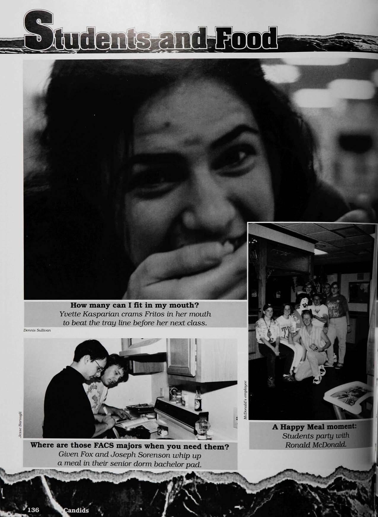 From Papa John's to blurbs, dominant elements and Photoshop, the experiences never seemed to end— ever! (camaro impounding (Z-28), court, L.P.D., theMcDonald's breakfast, "How you doing?", freak!!)... I could go on and on,but you know whatImean. To my roommate Sue, 1 sympathize for all the lonely scary nights I couldn't have made itwithout Franklin,Power pig,K-frog orGrandmaw's packages,especially Papas eggs. Thanks Selah for finallymaking me feellikesomebody with the allaccess press pass, thepower,the prestige! It'sbeen an awesome year and very busy butI wish ya'll the verybest!