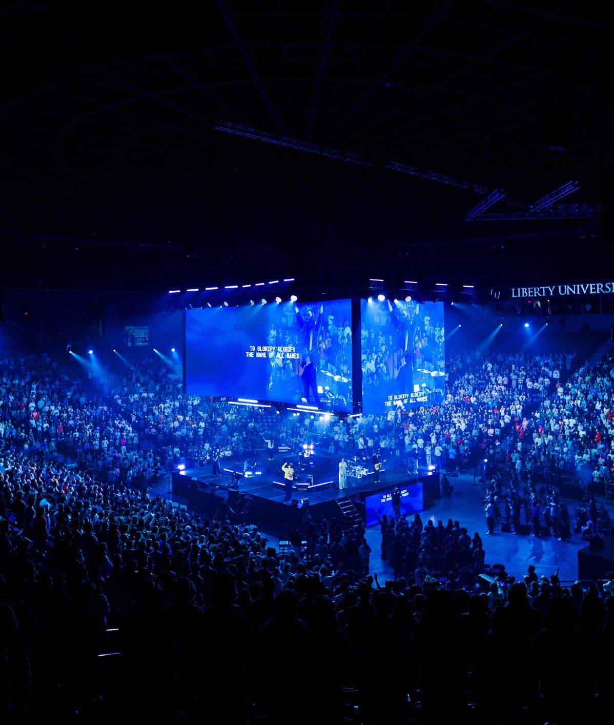 Campus Community takes place on Wednesday evenings in the Vines Center and is the central gathering place for worship and spiritual growth at Liberty.