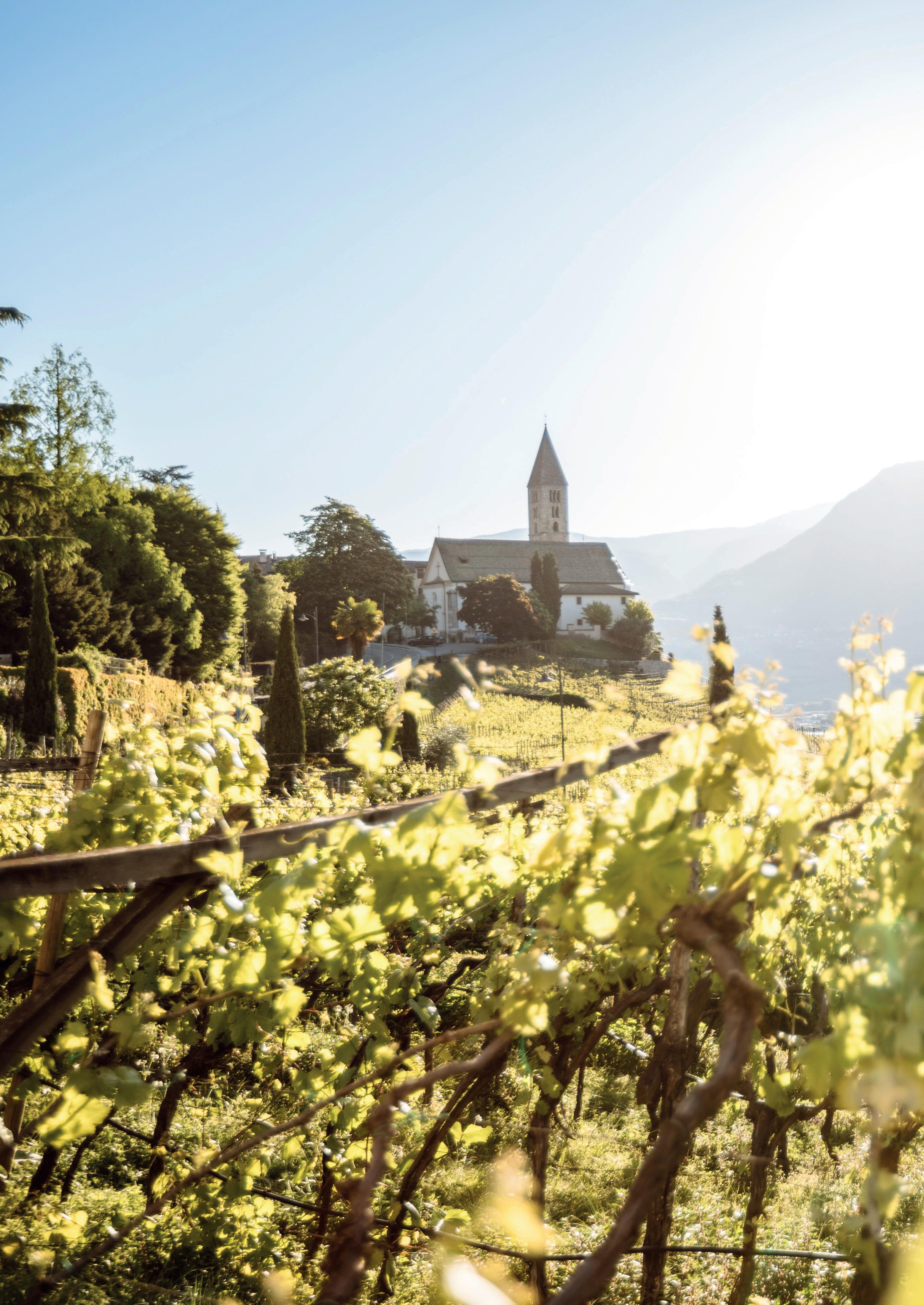 Start bij Kellerei Kurtatsch en loop via de Strada del Vino naar Alois Lageder. Geniet onderweg van het uitzicht op de Dolomieten tijdens een picknick met lokale kazen, speck en vers brood tussen de wijngaarden.